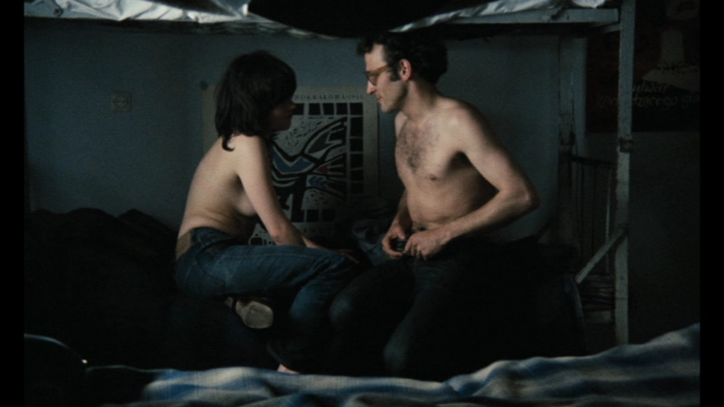 Considerably less linear is the second disc in the set, 1972's Illumination (Illuminacja), a swirling look at the nature of existence as seen through the eyes of Franciszek (Latallo), who attempts to parse out the universe first through physics and then biology but finds their laws impacting on his life in unexpected ways -- with friends succumbing to the pitfalls of gravity and human physiology dictating his path in life through both sex and childbirth. Along the way the film itself comments lecture-style on the events of the story, with the ultimate pursuit of "illumination" itself turning out to be a pursuit very much open to personal interpretation and perhaps never really attainable. Along the way the film features free associative visual flourishes involving snow, birds, brain surgery, monks, and artwork, often bordering on the avant garde.