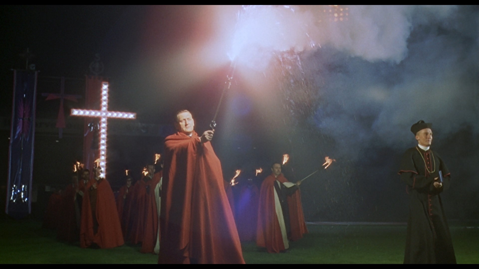 In 2022, Privilege finally got its U.S. Blu-ray premiere courtesy of Scorpion Releasing (distributed by Kino Lorber), well after the U.K. release had gone out of circulation. The transfer here is from the same source and looks essentially identical, which is fine considering it looked great in the first place. The DTS-HD MA English 2.0 mono track is also of the same high quality and features optional English SDH subtitles. The big extra here is a new audio commentary by Daniel Kremer, who does an adept and thorough job of outlining the film's influences and pop culture references, other connected British films of the period like The Rise and Rise of Michael Rimmer, the backgrounds of its stars, the intersection of propaganda and popular music, and lots more. Also included are the film's U.K. and U.S. trailers in HD, plus bonus ones for The Apple (which would make for a thematically relevant and completely insane double feature), Counterpoint, Cult of the Damned, Sleepless, and Strange Shadows in an Empty Room.