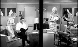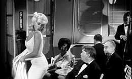 Shot almost entirely in single-take medium shots, Promises! Promises! pretty much bets everything on the physical charms of Mansfield, a guaranteed special effect to draw in audiences. Her simultaneous Playboy spread (in color, unlike the actual feature) didn't exactly hurt, either; the end