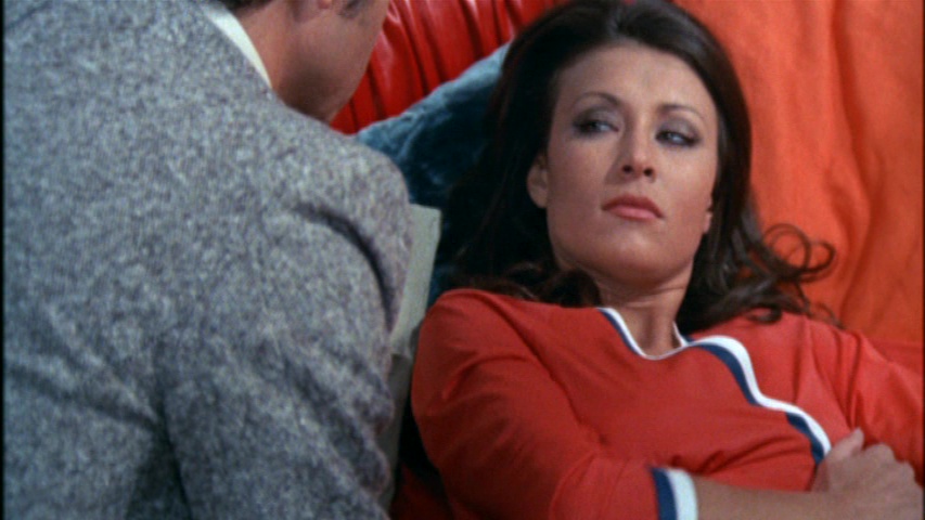 here (DTS-HD MA 2.0 mono) and sound solid, with optional English SDH or English-translated subtitles provided. The Mitchum interview is ported over here plus an HD English-language trailer (with the Italian title), plus three substantial new featurettes. In "Malisa of the Mob" (17m4s), Longo chats about her young days around Europe during the hippie