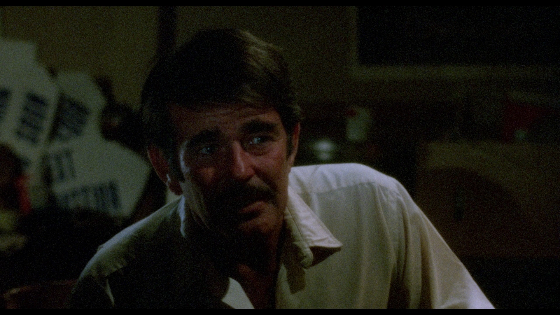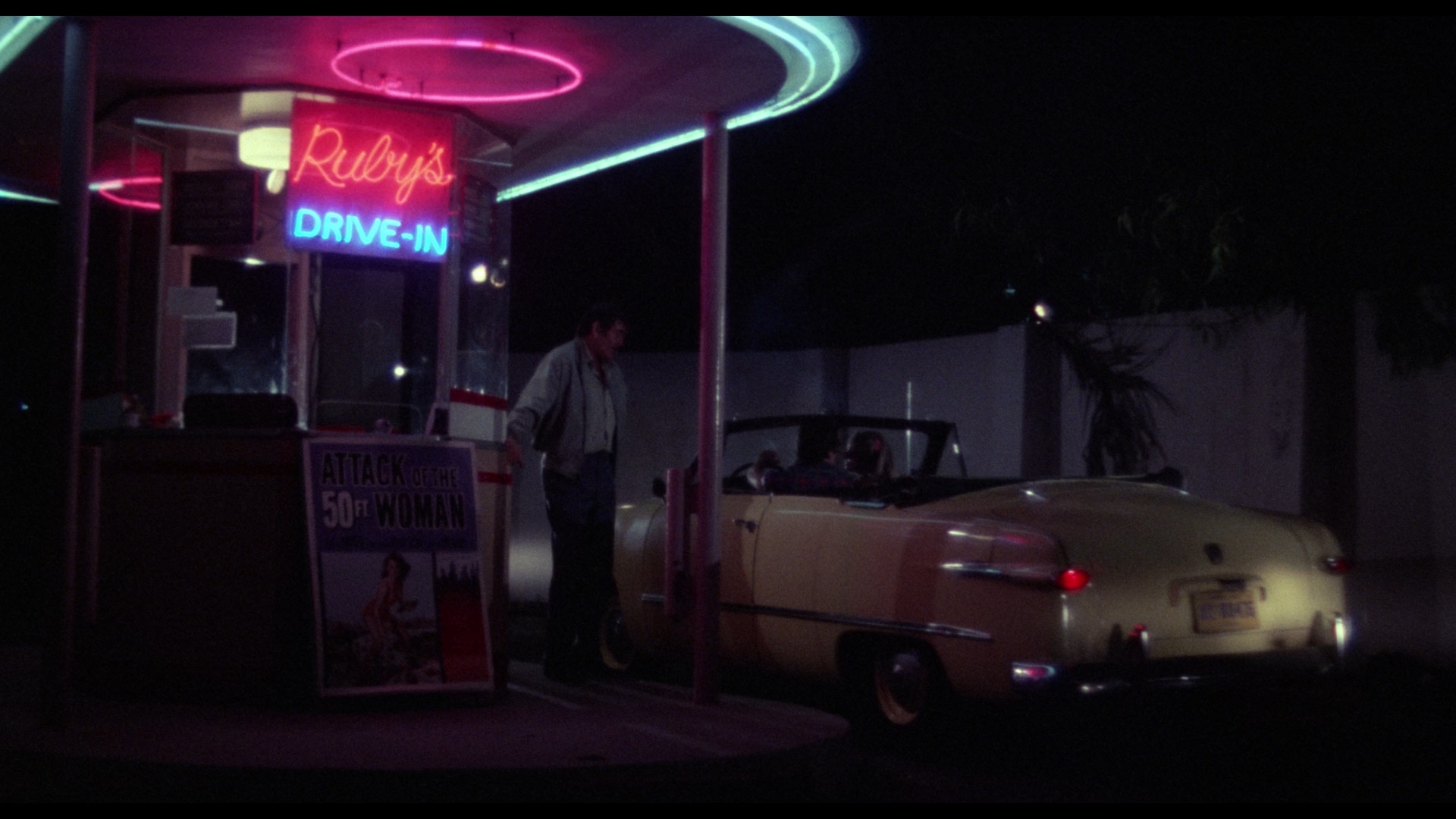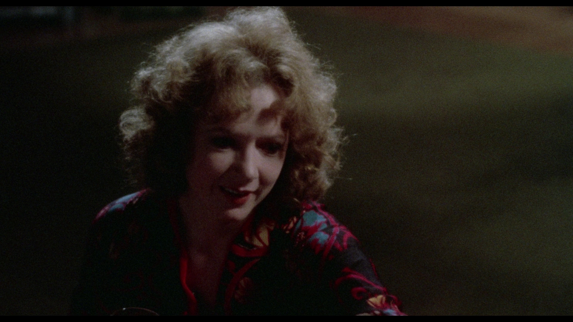quality bumping up quite visibly including more natural fleshtones, better detail, and far more legibility in the night scenes. The aesthetic here is very filtered and deliberately soft for the majority of the running time, but the UHD (with HDR10-compatible Dolby Vision) in particular looks much better than it ever has before outside of a first-run screening. The DTS-HD MA 2.0 English mono track sounds great given the very straightforward nature of the original mix, and optional English SDH subtitles are included. Both of the prior commentaries are included, but you also get a new one with David Del Valle and David DeCoteau; as anyone who's heard their previous track for Harrington's The Killing Kind can attest, they're a blast talking about the director and that's certainly the case here. Brisk and very entertaining, it's a great snapshot of Harrington, their own memories of and experiences with this film, and plenty of showbiz tangents ranging from the silly to the sad. Among the video extras, all three of the Del Valle interviews are carried over here plus the trailer; you also get a radio spot and the entire TV version in glorious VHS quality so you can remember how bad we used to have it. In the new "Keeping It Natural" (11m36s), Davis looks back at his work with Harrington starting on 1974's Killer Bees for TV (which employed Joel Schumacher early on), his typecasting as a cowboy, and his memories of this film including its box office success, his favorite moments, and the involvement of Krantz. Finally in the new "A Cinematic Summoning" (23m20s), Kim Newman traces Harrington's genre evolution for his early days working with the likes of Kenneth Anger in the underground scene through the development of his camp Hollywood sensibility that manifests throughout much of his work including this oddly effective portrait of doomed love against a moviegoing backdrop.