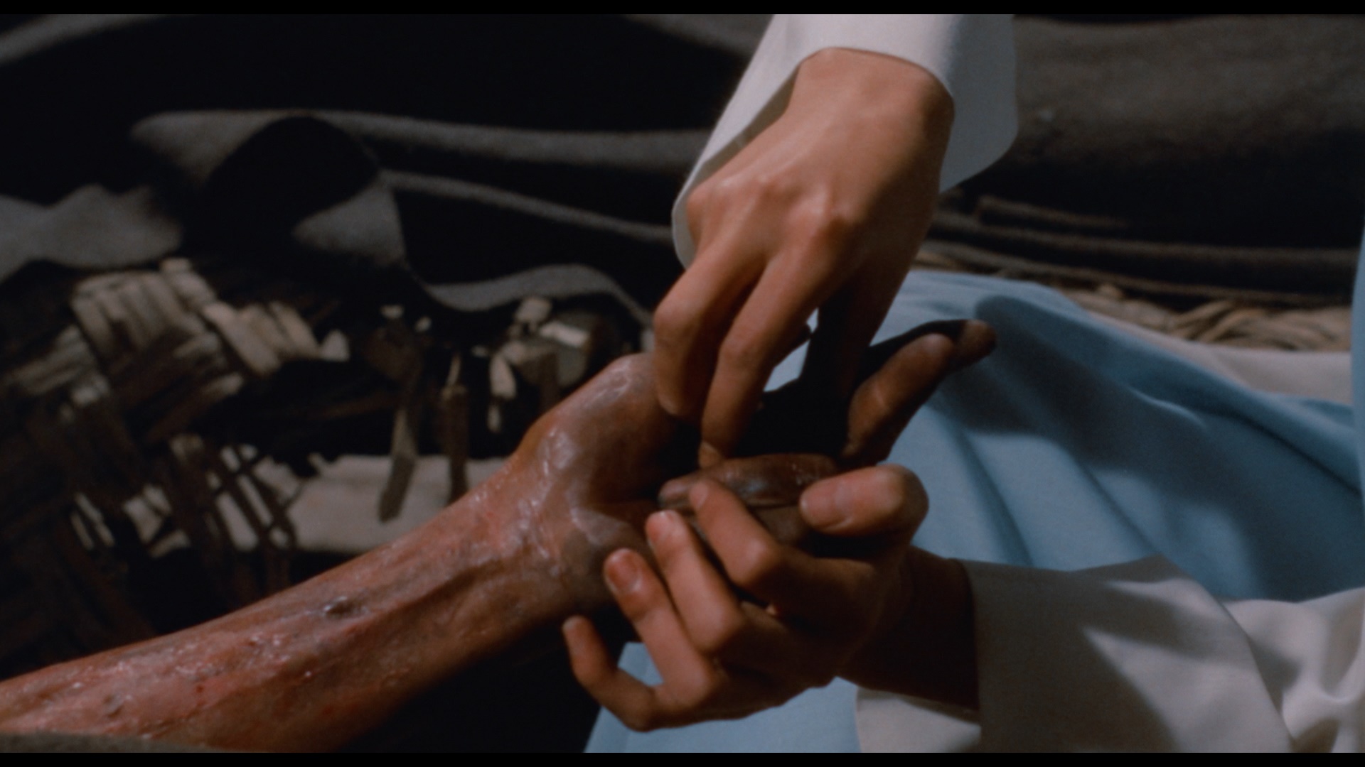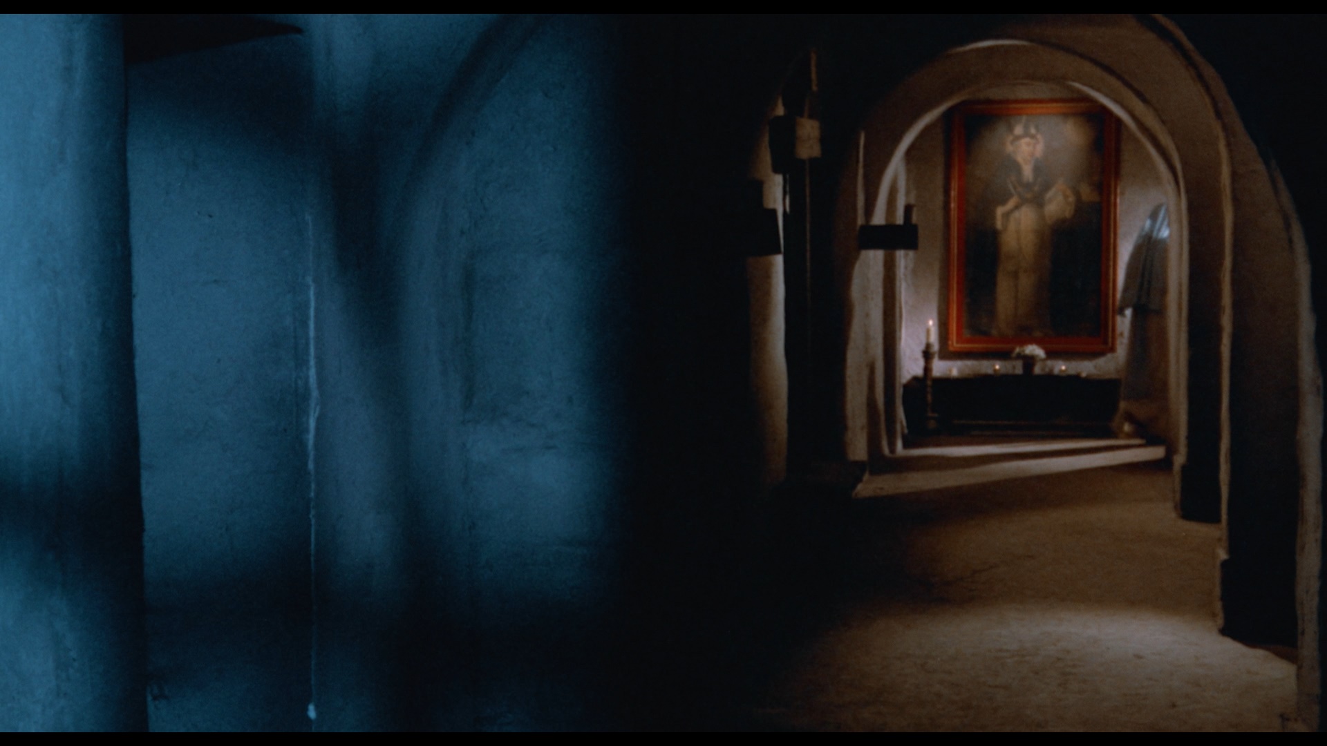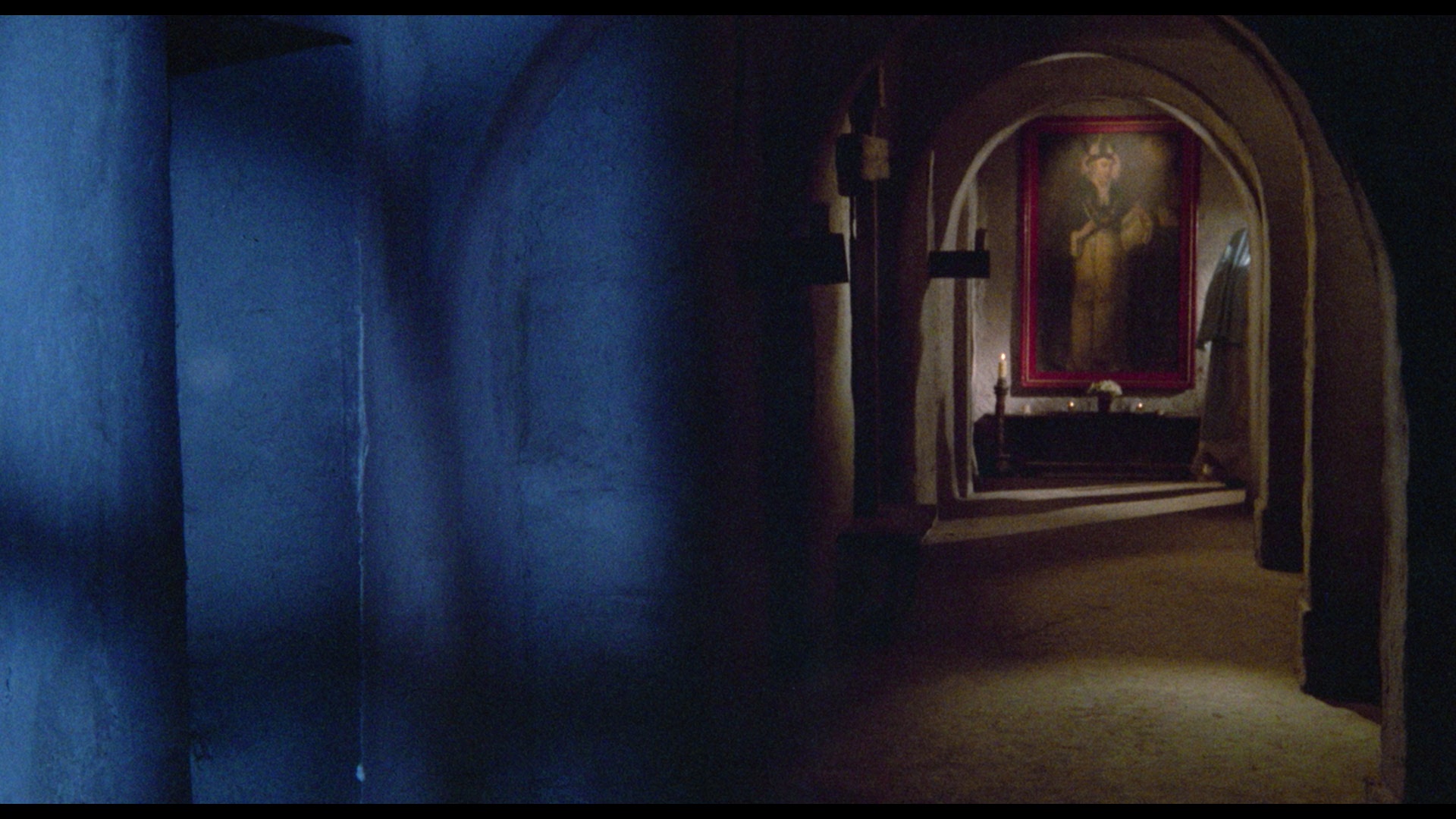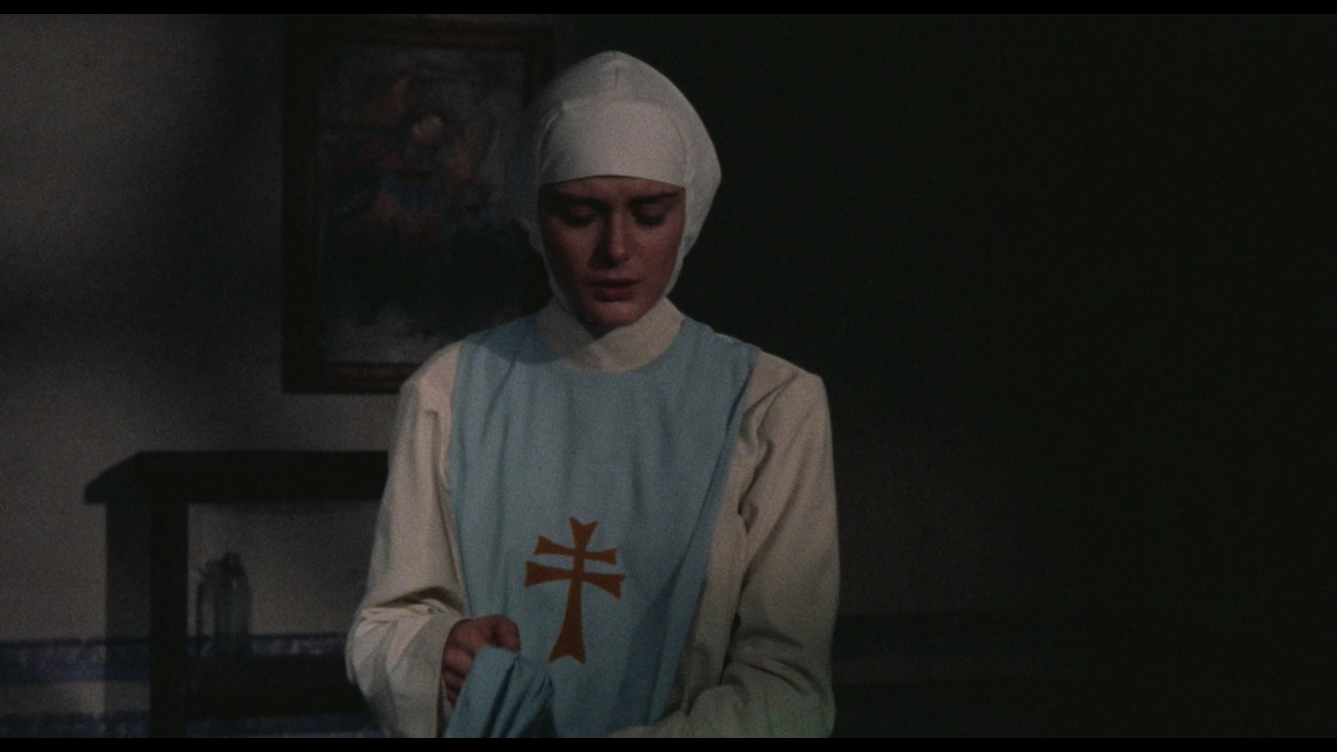 on and mostly off over the years in between) with a choice of two viewing options. The first is a fresh scan of what is referred to as "pre-print materials" on the menu but advertised as a new 4K scan of the negative. In any case, it looks excellent with nicely saturated color and the most detail by far of any available option. However, as the menu notes, it has an intermittent "optical fault" that was not fixable and so a separate scan of a theatrical print was commissioned. The latter looks, well, like a print with a grainier appearance and less impressive color; it may be more technically faultless but really the first option is better and any imperfections are minor enough. The DTS-HD MA Spanish audio is in solid condition throughout and comes with optional English subtitles. Both prior featurettes are carried over here, plus the usual Mondo Macabro promo reel, but there's also a new audio commentary by Diabolique's Kat Ellinger and Samm Deighan; anyone familiar with their past collaborations should know that they have a great rapport together and have an infectious glee that's present here as well. As they note from the outset there's very little tangible production material out there about this film, so instead they take the critical reading approach to contextualize this in the grander scheme of Mexican horror, nunsploitation, Satanic cinema, and much more.