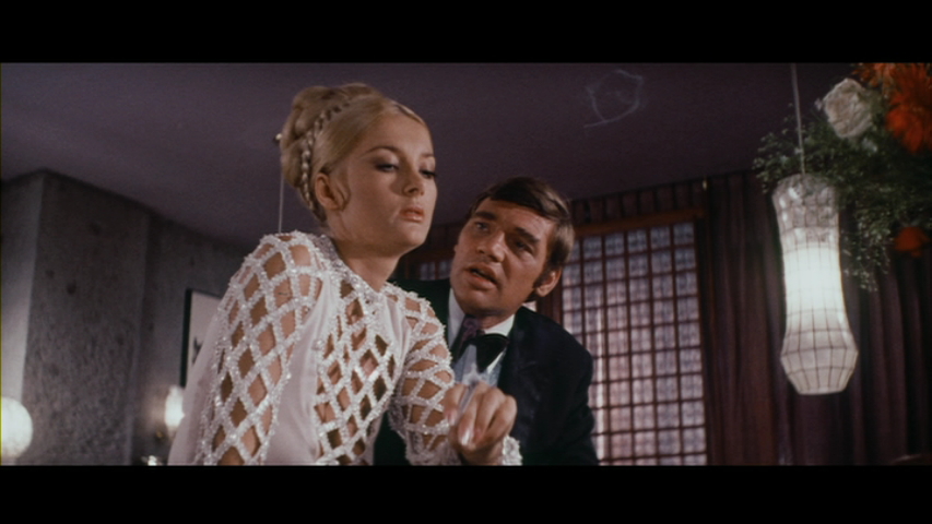 Another Euro-action double bill comes with more mixed results, starting with the more satisfactory offering of Stoney, a 1969 Filipino espionage film originally shot as The Surabaya Conspiracy and shown more widely on TV as The Gold Seekers. The always gorgeous Barbara Bouchet has a solid leading role here as Irene Stone, a frequently unclad criminal's moll tasked with uncovered some lost treasure in the South Seas. She has to use her wiles to get through a string of potential foes and allies to get to the hidden site, which is off the coast of the prime minister's estate. Michael Rennie(!) co-stars in this reasonably entertaining, colorful time waster, which also features Richard Jaeckel and The Road Warrior's Mike Preston. This being a Filipino film, you also have the always great Vic Diaz (referred to as a "hearthrob" on the sleeve!) in another of his hammy supporting roles. Also included is The Killer Likes Candy, an international assassination yarn previously released by Media Blasters as part of their second Rareflix collection covered here. This is the same exact Video Gems master with similar compression, so if you already have the previous version, you can skip this one; if not, it's a reasonably fun companion film that will hopefully get an upgraded transfer someday if anyone ever digs up an actual print. On the other hand, Stoney looks great and is presented in full scope with a new anamorphic transfer; as with the companion crime double feature above, it also features a "42nd Street" play option complete with bonus trailers including Nightmare and Stigma, which in these come from Code Red even if their name is nowhere in evidence on the packaging.