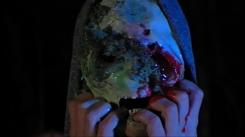 On the other hand, if you want to see a bona fide example of an '80s slasher without a postmodern filter, look no further than Final Exam, a distillation of the genre's cliches (already well established here by the 1981 release year) with a perplexing minimum of gore and an absolute maximum of absurdity. A "mass murderer" has just struck against some heavy-petting couples on a campus, and at the nearby Lanier College, the student body is buzzing about the possibility that the psycho could strike there next. Meanwhile the local frat boys are pulling harmless pranks like, uh, staging violent school shootings in the quad (ha ha, ho ho), and when the real killer in a military jacket does start wielding his knife, no one's quite sure what's real anymore. Shot in North Carolina, this is hardly the best of the often derided slasher craze but certainly far from the worst as well; it's a reasonably witty and unpredictable film that compensates for its lack of blood with some peculiar characters (especially the chatty horror fan student named Radish who predates Scream by a couple of decades) and a couple of fairly energetic shock sequences. Incredibly, this has actually been out on DVD in two special editions; the first from BCI (sporting a very lackluster transfer) quickly went out of print when the company ceased production, while the subsequent reissue from Scorpion boasts a much better new transfer with richer colors, deeper blacks, and a far more attractive overall apperance. Both versions feature video interviews with actors Cecil Bagdadi, Joel S. Rice and Sherry Willis-Burch and the theatrical trailer, but while the BCI disc contains a cast commentary, the Scorpion one instead features producer Myron Meisel talking about the film from a more in-depth production standpoint (including some surprising wrangling with the MPAA) moderated by horror hostess Katarina Leigh Waters, who also amiably introduces the film as part of her "Katarina's Nightmare Theater" line of retro horror titles, whose other entries are promoted here with trailers for The Devil Within Her, The Pyx, Nothing but the Night and Humongous.