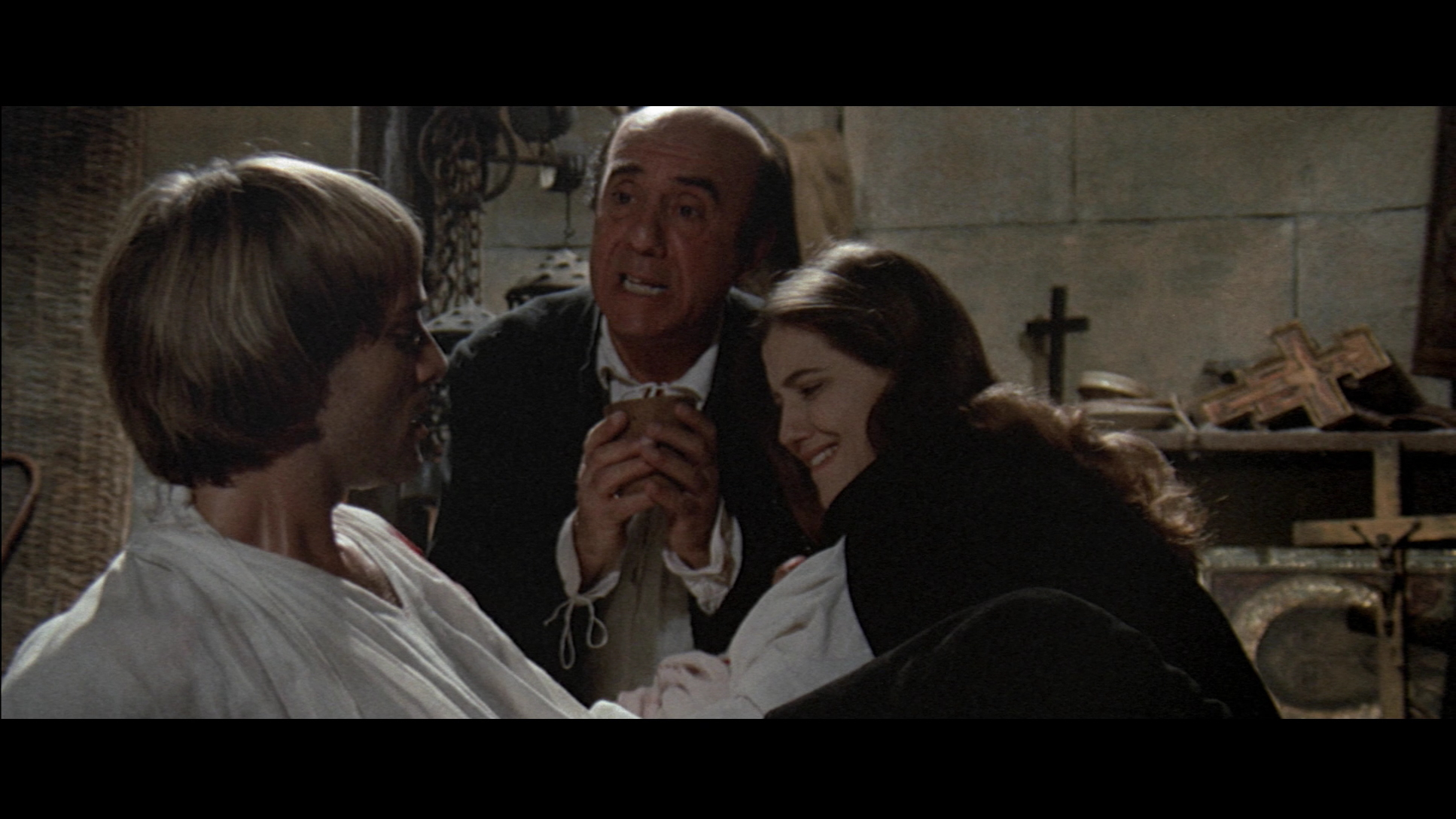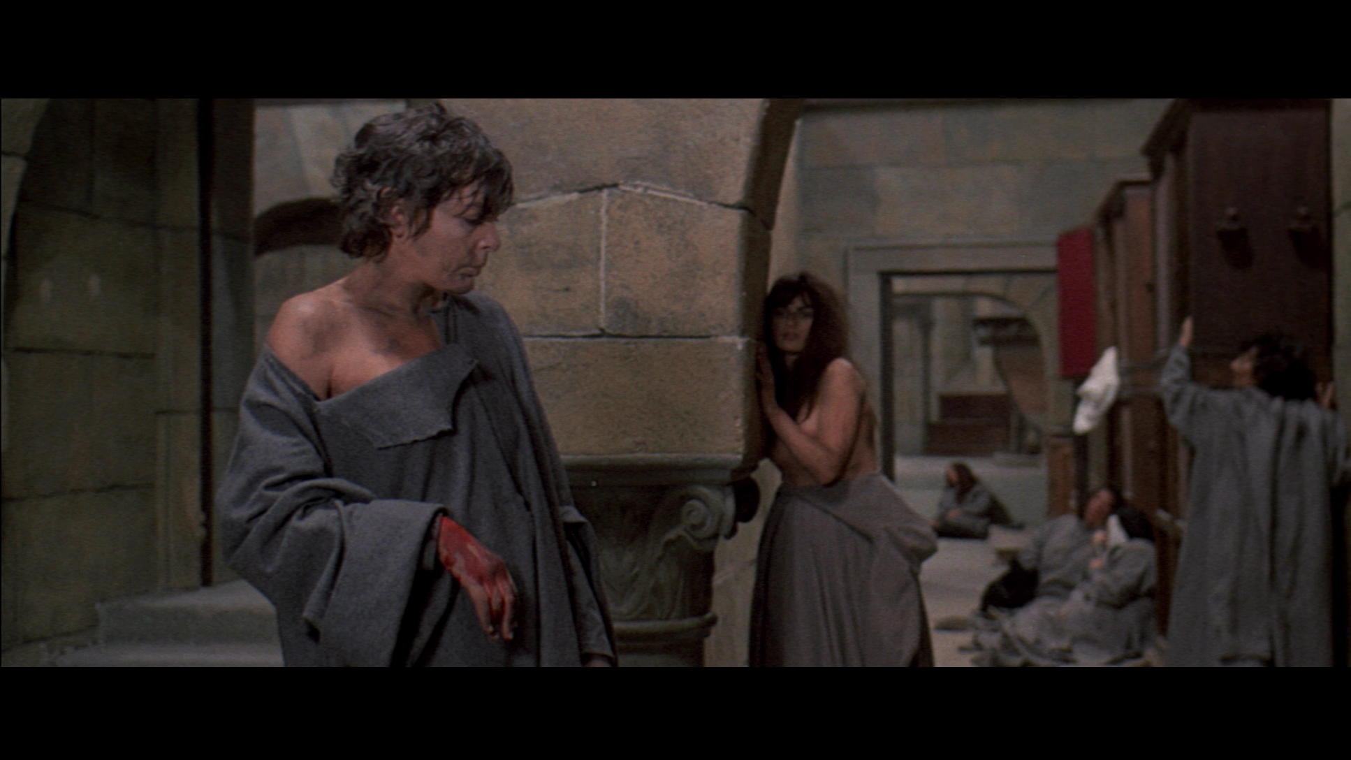The aforementioned Image DVD from 1998 was letterboxed but not anamorphic and looked pretty dull at the time, with the intervening years not exactly adding to its luster. The 2013 remaster from Redemption through Kino Lorber is a massive improvement, not surprisingly; there's no digital clean up here and the colors still look pretty drab and earthy (as intended), but it's much sharper, richer, and cleaner than before. It's pretty comparable to previous releases like Black Magic Rites, and fans should be happy to see it looking so much healthier than the old master from fifteen years ago. The PCM Italian mono audio track also sounds better, but it's still limited by the source consisting of lots of dialogue and some very sparing period music. The sole extras are other Redemption trailers for Virgin Witch, Black Magic Rites, House of Whipcord, Marquis De Sade's Justine, and Killer's Moon.