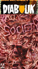 In the 16-minute "Governor of Society," Yuzna offers a more thorough look at his overall career from his start in Hollywood working on Re-Animator through an early potential collaboration with Dan O'Bannon and his wild run of fantastic cinema. Adding on to comments elsewhere on the disc, he also covers how the film was originally written with the rich villains turning out to be a blood cult, an aspect he jettisoned in favor of the more grotesque and unexpected direction the story takes now. He also cites some of his major sources of inspiration including the early horror classic Doctor X and Salvador Dali. The 22-minute "The Masters of the Hunt" looks at the actors with Warlock, DeVasquez, Meyerson and Bartell talking about how they got started in their acting careers (including soap opera experience and Meatballs II), reactions to first reading the script, the fun of shooting the bullying scenes, the challenges of shooting the Warlock/DeVasquez sex scene, and the surreal nature of getting covered in latex. The 20-minute "Champion of the Shunt" features Screaming Mad George, David Grasso and Nick Benson, loaded with production photos and detailed stories about the creation of the big finale. George also talks quite a bit about getting his start, the origins of his name, and his artistic influences; he also gets to show off some of his wild creations (like a "foot dog") sitting on his desk. In a 2014 Q&A with Yuzna at a 2014 screening at the UK's Celluloid Screams Festival, he talks for 38 minutes about how his own personal politics and their influence on the story, the censorship issues and chilly reception in America, the Japanese financing situation, and how joyous his first day was on the set of the shunting scene. In much rougher condition is footage of Yuzna at the film's 1989 UK premiere at London's Scala Cinema, speaking for just under two minutes about the importance of horror films and the difficult nature of this particular title. Also not to be overlooked is a 6-minute Screaming Mad George music video, "Persecution Mania," loaded with nutty effects including a giant eyeball in a TV set. The eye-catching limited edition packaging includes a comic book sequel to the film entitled Society: Party Animal, which presumably won't be in any future pressings, while the liner notes booklet has an essay by Alan Jones. Highly recommended.