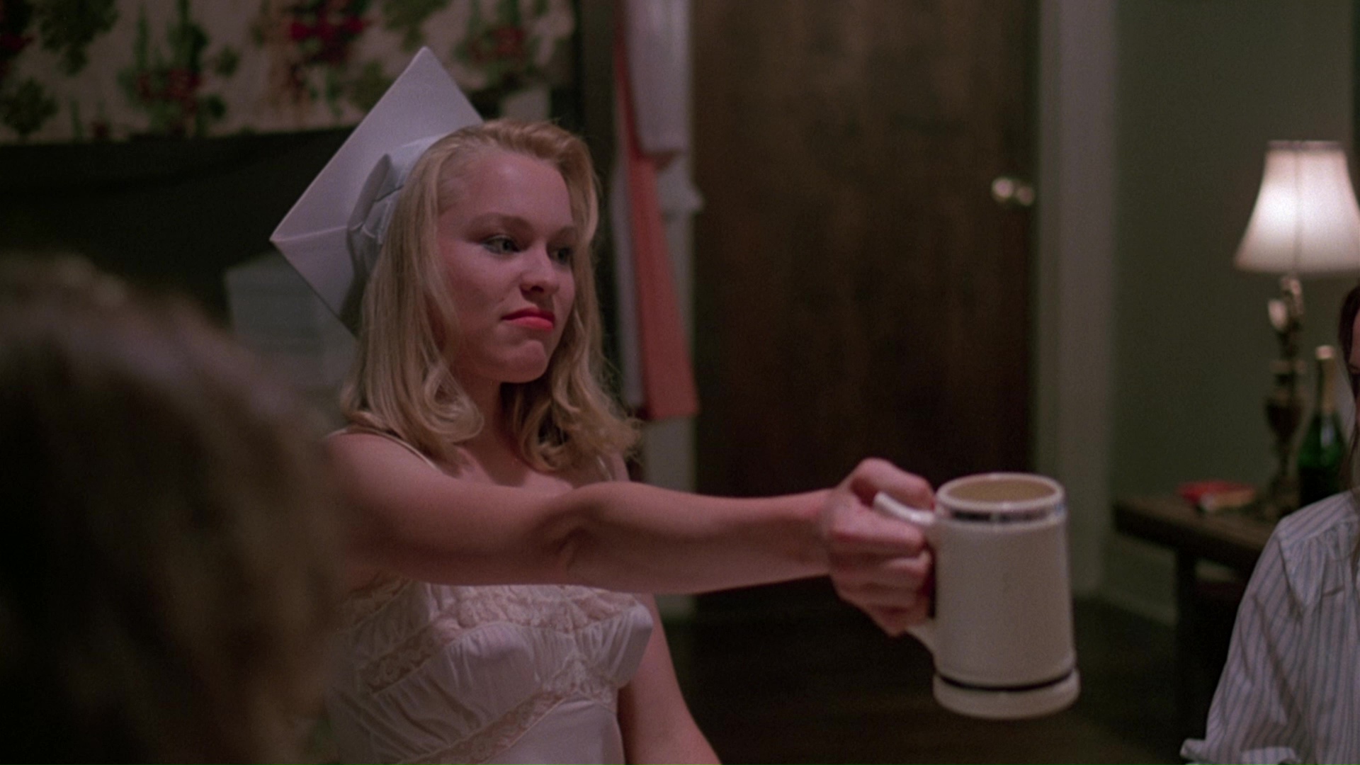 house mother Mrs. Slater (Hunt) seems to be harboring a grudge dating back to a traumatic birth (seen in the atmospheric pre-credits sequence.) At the end of term, one of the sorority girls, Katherine (Monkey Shines’ McNeil), refuses to move back home and decides to stay with her Greek sisters for a final graduation party. Unfortunately, a lack of funds has forced the girls to throw their party at the house instead of off campus as originally planned. Mrs. Slater always demands the house be closed down by June 19th, but since she'll be off at the mental institution for treatment, she won't mind... right? Unfortunately Mrs. Slater cancels her stay and shows up unannounced while the girls are planning during a binge of boozing and smoking. Even worse, she catches one of the girls fooling around with a college boy and takes a poker to their water bed, with messy results. They decide to get back at the old tyrant by pulling a practical joke involving a partially loaded pistol and the house's swimming pool; naturally this little joke backfires, leaving Mrs. Slater dead and the guilty parties conspiring to leave her body submerged in the water. However, the corpse disappears and the girls begin dying one by one. Even worse, Mrs. Slater's nasty secret reason for closing the house every year might have something to do with a surprise lurking in the attic...