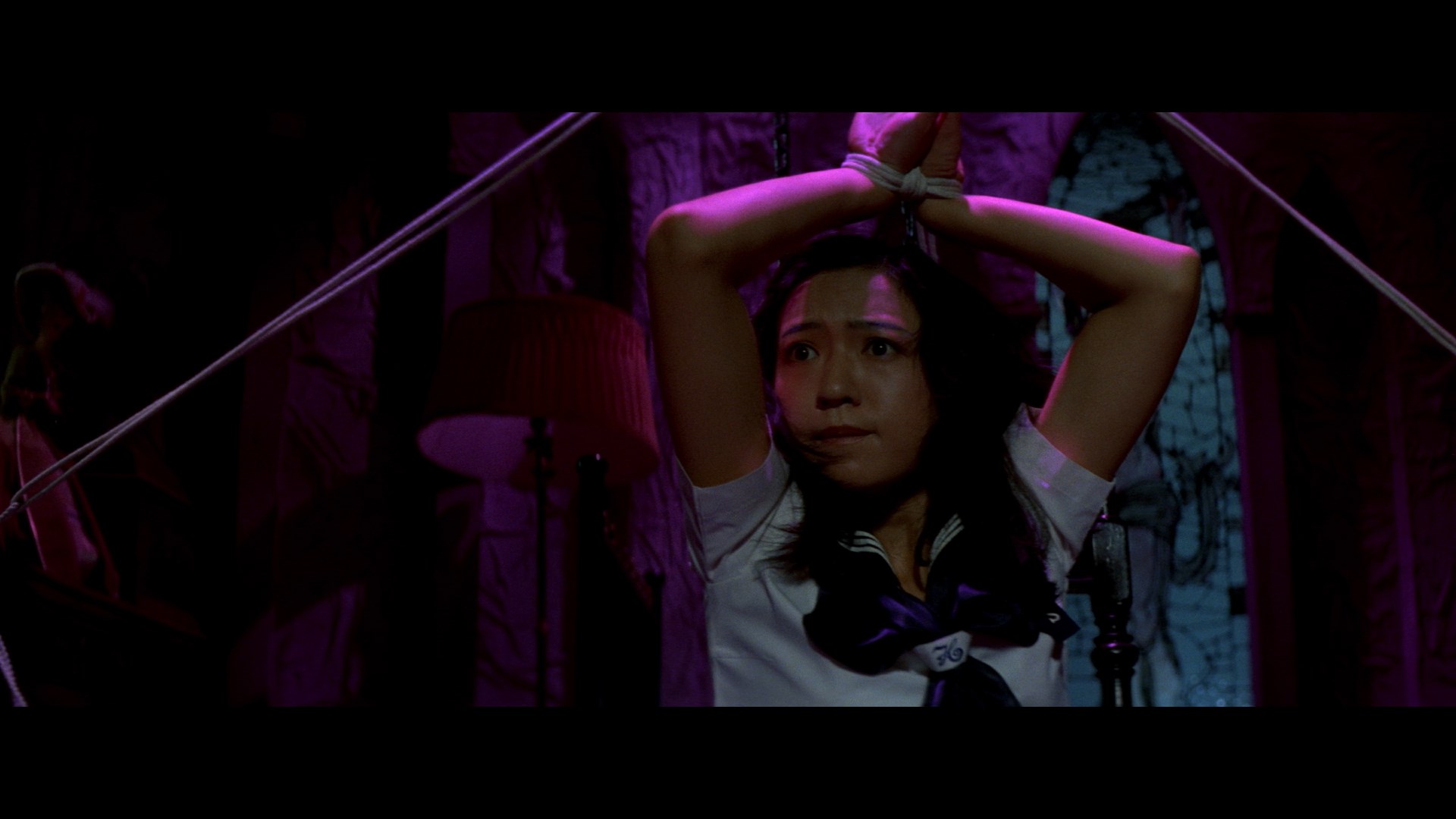 about his start at Toei, the professional advantages of his "speed and work ethic," his approach to shooting commercially necessary erotic cinema, his transition to Nikkatsu, and the obliging attitudes of actors in the field. Also included are the trailer (which downplays the really nasty stuff and tries to pass this off as a vaguely kinky romance) and bonus trailers for Zero Woman Red Handcuffs, Bohachi Bushido, Blind Woman's Curse, Chinese Torture Chamber Story, Ebola Syndrome, and Sukeban Boy.