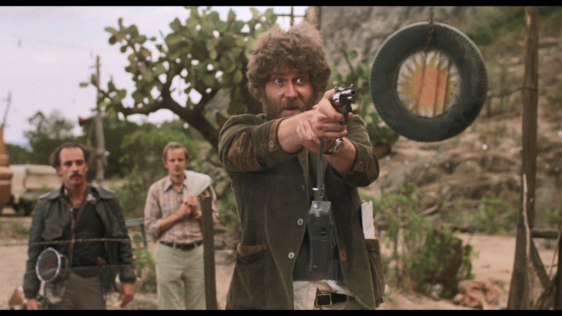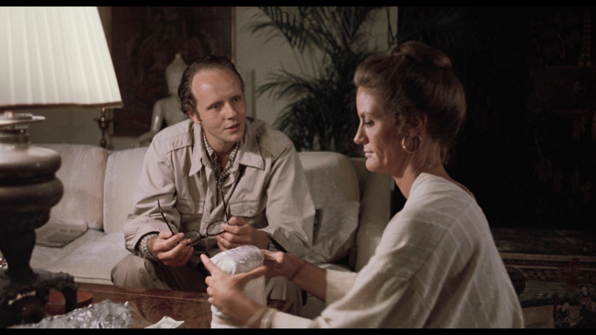Initially released on DVD by MGM in an okay but sparse anamorphic presentation and then repackaging as a two-movie set with Rush, Who'll Stop the Rain first appeared on Blu-ray in 2017 from Twilight Time featuring a trailer and an interview with editor John Bloom, plus liner notes by Julie Kirgo and Kevin Hagopian. That edition went out of print fairly quickly like many of the label's titles, paving the way for a 2021 Blu-ray reissue from Scorpion Releasing via Ronin Flix sporting what's promoted as a new 2020 HD master. The transfer looks very healthy with fine, natural grain and a strong, warm color scheme throughout that makes for an appealing viewing experience, certainly more robust than the drab and faded look it had in the scant repertory screenings around major cities that stopped around a decade ago. The DTS-HD MA English 2.0 mono track sounds crisp and without any significant issues, and optional English SDH subtitles are provided. A new audio commentary by film historians Daniel Kremer and Scout Tafoya is extremely thorough, starting off with a lengthy appraisal of Reisz and the role of this film in his career (including some welcome nods to his earlier, undervalued version of Night Must Fall)