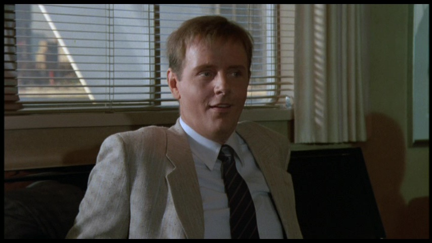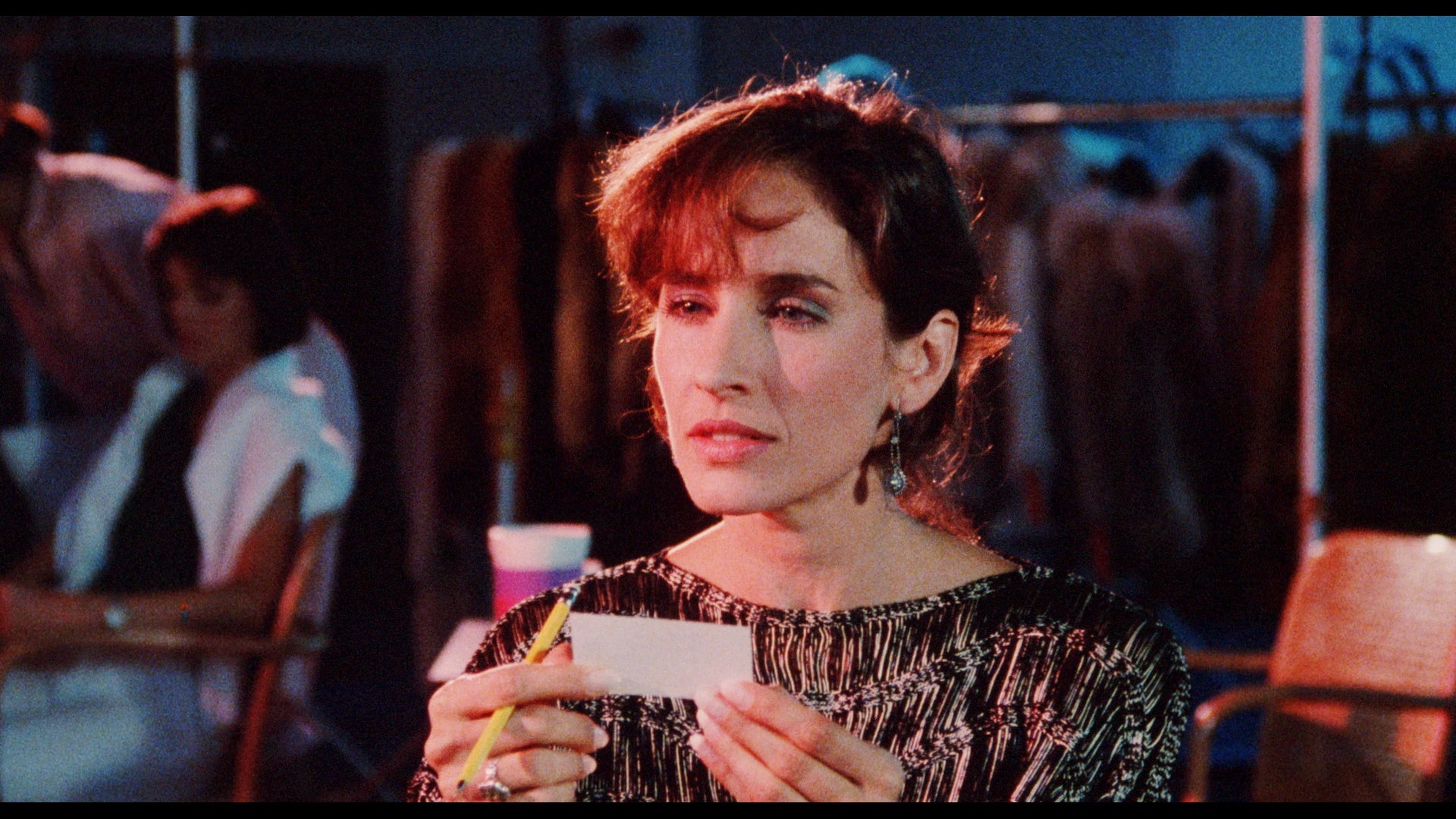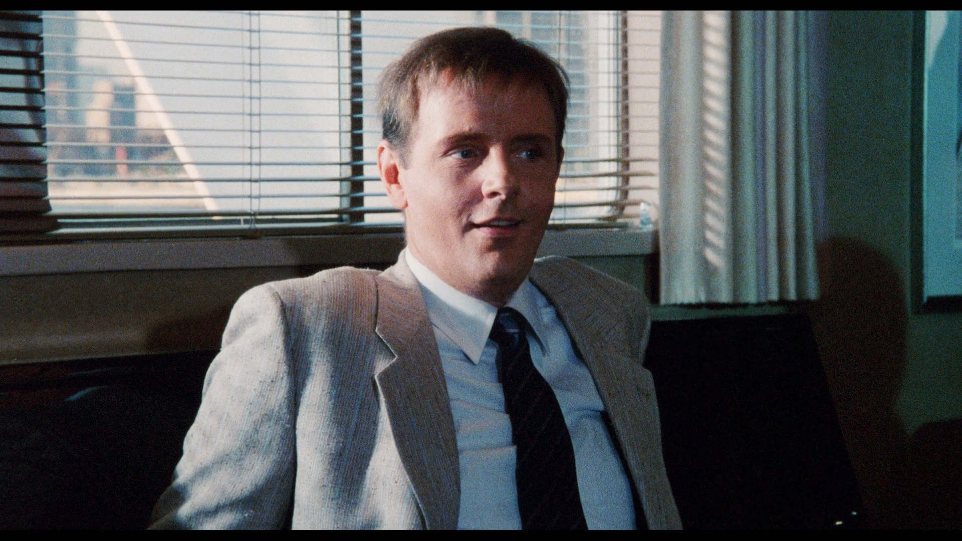 But wait! Since this is a two-disc set, you also get a Blu-ray featuring a pre-release version of the film clocking in at a much longer 118 minutes. This print apparently surfaced by surprise and represents Cohen's initial cut delivered to New World, which he was begrudgingly forced to cut down and rescore. Though the gist of the film is the same, the experience is quite different with many scenes extended and shuffled around including a great Peller-Vigoda commercial placed at the beginning. There's a lot of expansion for the Moriarty-Marcovicci romantic relationship here including a lengthy bedroom scene, and the ending plays out differently by dropping the stinger epilogue and instead closing on a more clear-cut note. The presentation here is obviously from a print but looks quite nice all things considered, again with 1.0 LPCM mono audio with optional English SDH subtitles.