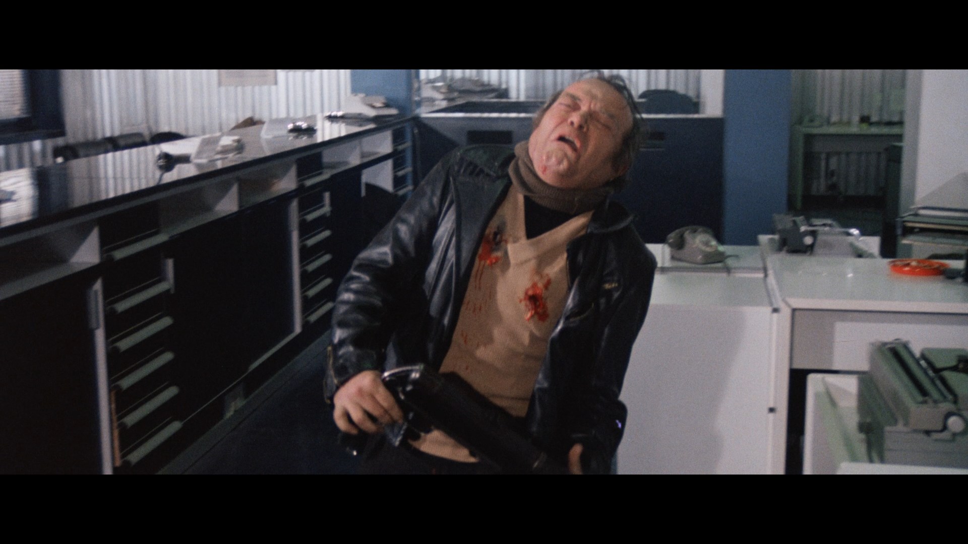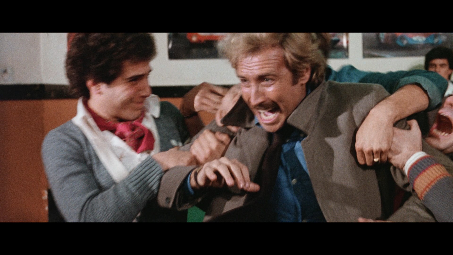 In 2021, 88 Films brought Lenzi's epic to the U.K. Blu-ray in a two-disc set with a limited edition featuring a rigid slipcase with new art by Thomas Walker, a 40-page book featuring a Lenzi interview by Eugenio Ercolani, and a double-sided fold-out poster. Disc one features the movie itself (looking identical to the excellent U.S. presentation) with DTS-HD MA 2.0 mono English and Italian tracks with optional subtitles, the Mike Malloy commentary, the trailer, and alternate Italian credits sequence, but from there things diverge completely with a new slate of extras. Kim Newman and Sean Hogan provide a new audio commentary in which they take a lighthearted look at the ins and outs of the Italian cop film, the traits shared with American counterparts, the significance of using particular cities in the titles, Merli's career and cinematic significance, and tons more. Eugenio Ercolani provides a whopping seven new featurettes, some with participants on the previous release but in solid new interviews here: "Standing Out" (17m46s) with Solari, "Funk and Violence" (26m57s) with Micalizzi, "Men of Violence" (20m11s) with
