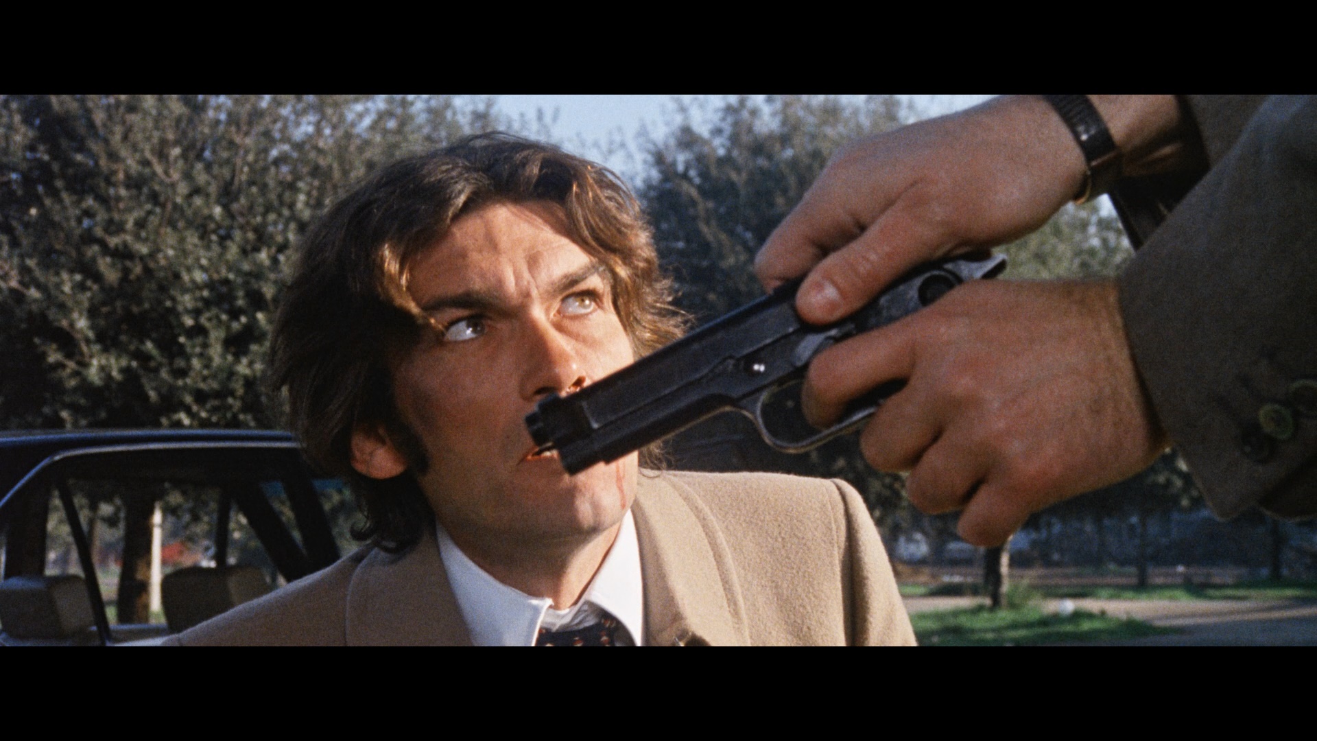 any past release and looking very satisfying throughout. Colors are vivid and often beautiful, too, including those lime green cars and the bright red band on Milian's cap. Both the English dub and the Italian version (with optional translated English subtitles) are presented in DTS-HD MA mono mixes and sound great; the Italian track is far superior since that's the language nearly all the actors were speaking, but the dub has its wacko charms as well with a fair share of quotable dialogue ("Crap like you oughta be taken home and castrated!"). The film can also be played with a new audio commentary by Eurocrime! director Mike Malloy, who's chock full on info about the differences in the American version (which featured radically different credits with Anglicized names and omitted most of the entire opening 10 minutes), the joys of the score by Micalizzi ("one funky Italian"), the appeal of Merli's frequently interchangeable cop characters, the weirdness of Milian and Merli playing the same characters in multiple other films, the importance of the English-language voice actors, and tons more. Also on the first disc is All Eyes on Lenzi: The Life and Times of the Exploitation Titan (94m4s), a feature-length documentary by Calum Waddell featuring interviews with and about the venerable filmmaker with contributors including Giovanni Lombardo Radice, John Martin, Mikel Koven, Rachel Nisbet, and Danilo Mattei chatting about his genre-hopping abilities and impact on the thirst for sexy, violent entertainment from the '60s onward. Then "Music for Mayhem" (33m12s) features a reunion between Lenzi and Micalizzi in Rome in 2010 strolling down memory lane about their first meeting, working with Milian, a funny aside about Rambo, and the role the scores played in some of the strongest action scenes as well as the influences of everything from Neapolitan to Chinese music. "Citta Frontale: Roma on Location" (22m1s) is an archival piece by NoShame for Italian DVD covering the evolution of Rome on film from neorealism to the bullet-riddled heights of the 1970s, including considerable coverage of the locales seen in this film. Finally you get an international trailer (as The Tough Ones), the Sybil Danning VHS intro, a VHS trailer (as Assault with a Deadly Weapon), and bonus trailers for Cannibal Holocaust, Cannibal Ferox, Massacre Mafia Style, Gone with the Pope, Pieces, Scum of the Earth, The