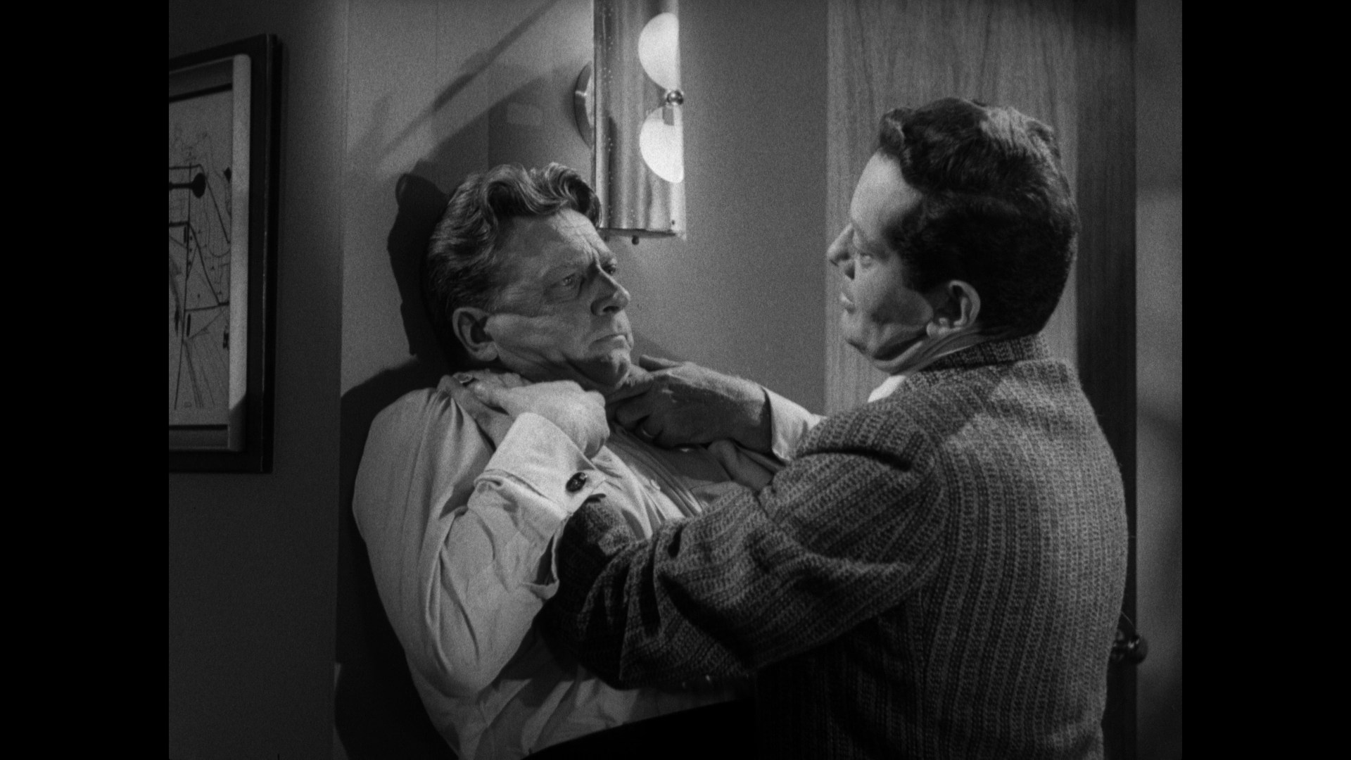 and see a woman being murdered by a glove-wearing burglar. By the time the cops show up, the apartment is completely empty -- but how can that be? Then in “A Chapter of Genesis” (26m27s), also by Waggner, no-good Jamie (Peter Miller) comes back to the farm where he grew up just in time for his dad to kick the bucket and to produce a new will invalidating the one with family attorney Karloff leaving everything to older brother John. However, the afterlife has other plans in store. The obvious but entertaining "Girl on the Road" (26m27s) is a little ghostly number in which an afternoon drive by John Rpescott turns weird when he stops to help the beautiful Lila whose car has conked out on the road. They end up spending time at a nearby bar, but an encounter with her uncle (Karloff) casts things in a different light. In "The Doctor" (25m33s), we head to Italy, or at least a soundstage simulation of it, where elderly village doctor Carlo (Karloff) presents a problem when none of the locals will see anyone else including his son, Angelo (Tony Travis), who's seen as too young to be a trustworthy physician. When a life-threatening illness strikes a young girl, something inexplicable happens... It's a slight but effective little open-ended tale featuring that nebulous "Old Europe" atmosphere you'd find on lots of these kinds of shows even well into the '70s with Night Gallery. In "Vision of Crime" (26m26s), the first one of several directed by veteran Herbert L. Strock, we return to the idea of an uncanny murder witness. Here Robert Hardy (Dark Places) as George Bosworth whose sea voyage turns horrifying when he has a vision of his brother being gunned down in his apothecary back in England. Upon returning he tries to steer suspicion away from the accused suspect with the police, represented by Karloff and a young Patrick