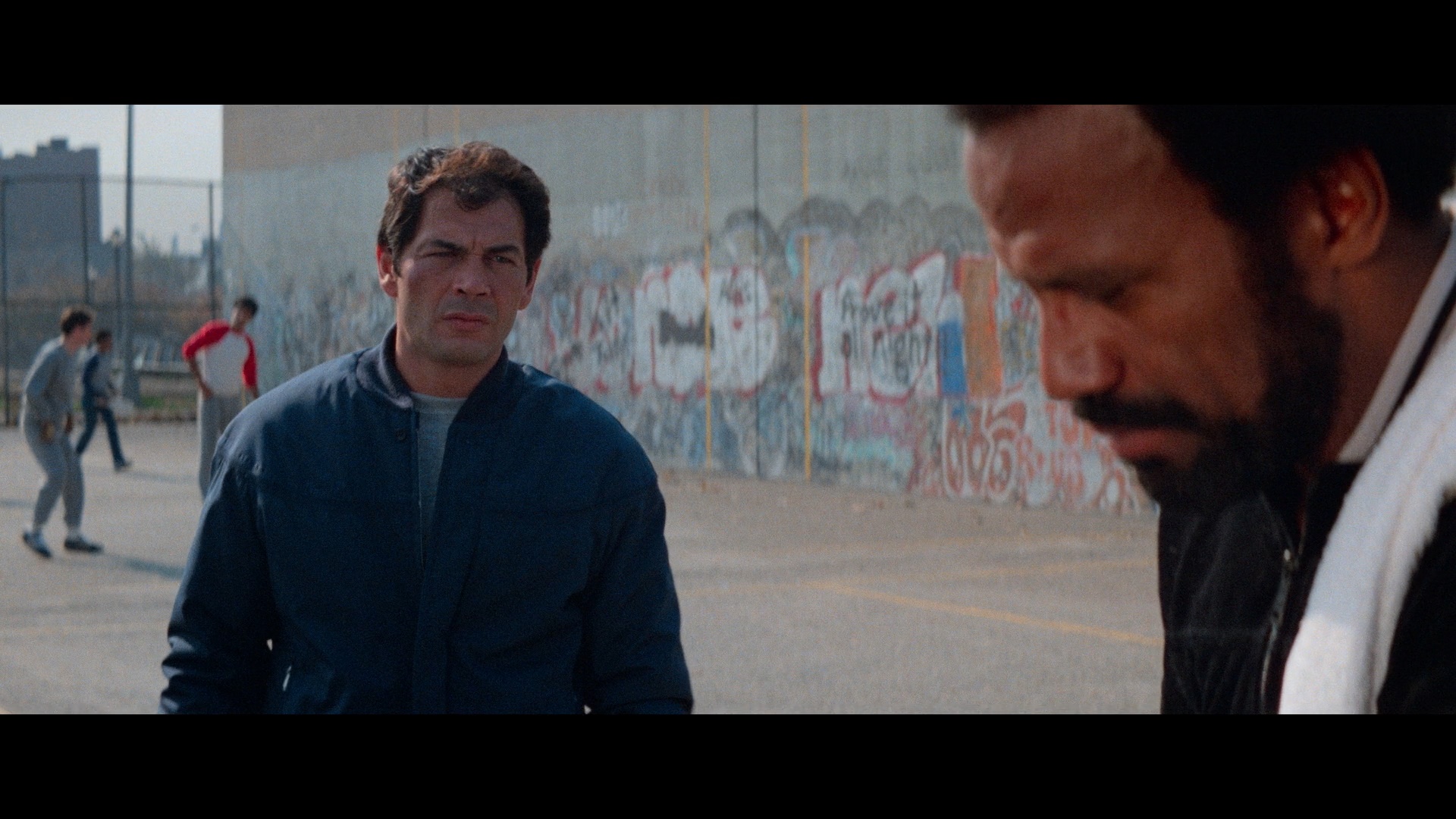 but the Blu-ray does a much more capable job of handling the shadowy night scenes and really delivering the scuzzy little details hiding in all those visual layers of steely lighting. Audio is presented in English 7.1 DTS-HD and 5.1 Dolby Digital Surround EX options (with D-Box enhancement if you really want to feel those gunshots shake your feet), as well as French, German, and Italian dubs in basic Dolby surround. Optional subtitles in English, French, Spanish, and Portuguese are also provided, and the disc is region free. In addition to carrying over the original commentary, the Blu-ray adds an additional commentary with Lustig and co-producer Andrew W. Garroni that goes more into the production aspects of shooting in New York, the hiring process for the cast and crew, and the heavy influence of Italian crime films which eventually makes you expect to see a vacationing Maurizio Merli pop up to gun down some gang members at any minute. Other extras include four theatrical trailers (American, German, Italian, and French), TV spots, a radio spot, a promo reel, and a gallery of stills and promotional art.