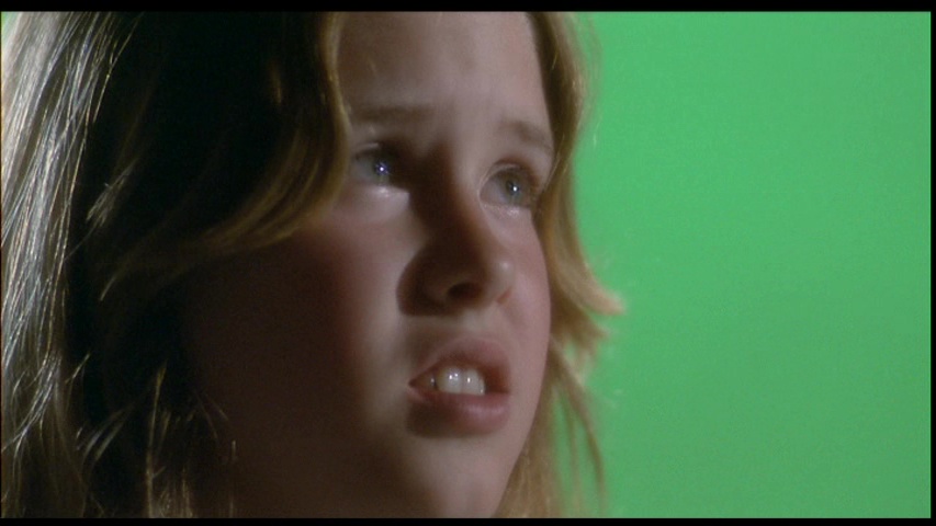 Not surprisingly this was essentially the handiwork of Ovidio G. Assonitis, the shameless producer who brought you the most successful Exorcist imitation from Italy (Beyond the Door) and whose films were usually trimmed down significantly for stateside release. This was no exception to that rule, but we'll get to that in a minute. Our tale begins in some otherworldly realm where a messianic blond guru (Nero) sits around telling bald alien kids the story of Sateen, a "moo-tahnt" galactic villain intent on spreading his destructive force throughout the universe by procreating as much as possible. Enter Jerzy (Huston), who informs us that he's just had a vision showing him the latest of Sateen's descendants: Katy Collins (Conner), an eight-year-old living in Atlanta, Georgia whom we first see watching a Hawks basketball game at the now demolished Omni Coliseum. Katy's mom, Barbara (Switchblade Sisters' Nail), is a chipper type happy to let her daughter ice skate and play Pong all day, but an evil corporation run by Dr. Walker (Ferrer) is intent on unleashing Katy's diabolical power and enlists her husband (Henriksen, basically reprising his role from the previous year's Damien: Omen II) and a bitchy nanny (Winters, using leftover fashion options from Tentacles) to make sure Barbara spawns another child to accompany Katy on her dark mission. Of course, this is
