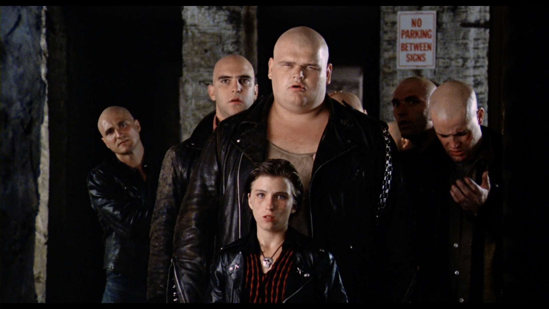 a character added for the film). In the process they pick up a new member, recent muscle-bound arrival Perry (Porkys' Ganios), who likes to jump in and save little guys from being beaten up. Other gangs in the vicinity include the violent Ducky Boys from Brooklyn, a black gang called the Del Bombers, and even an Asian gang with formidable martial arts chops, the Wongs (who inspire the film's most indelible slogan).