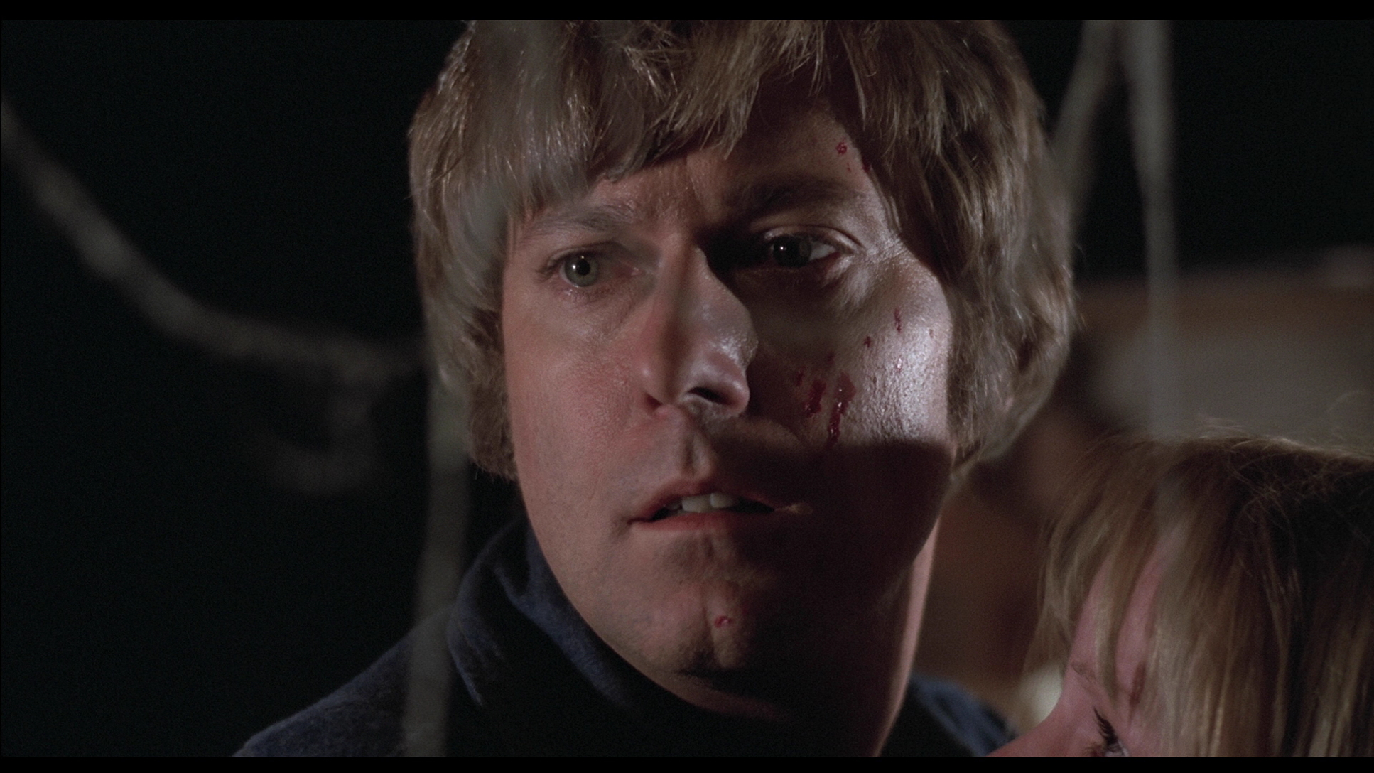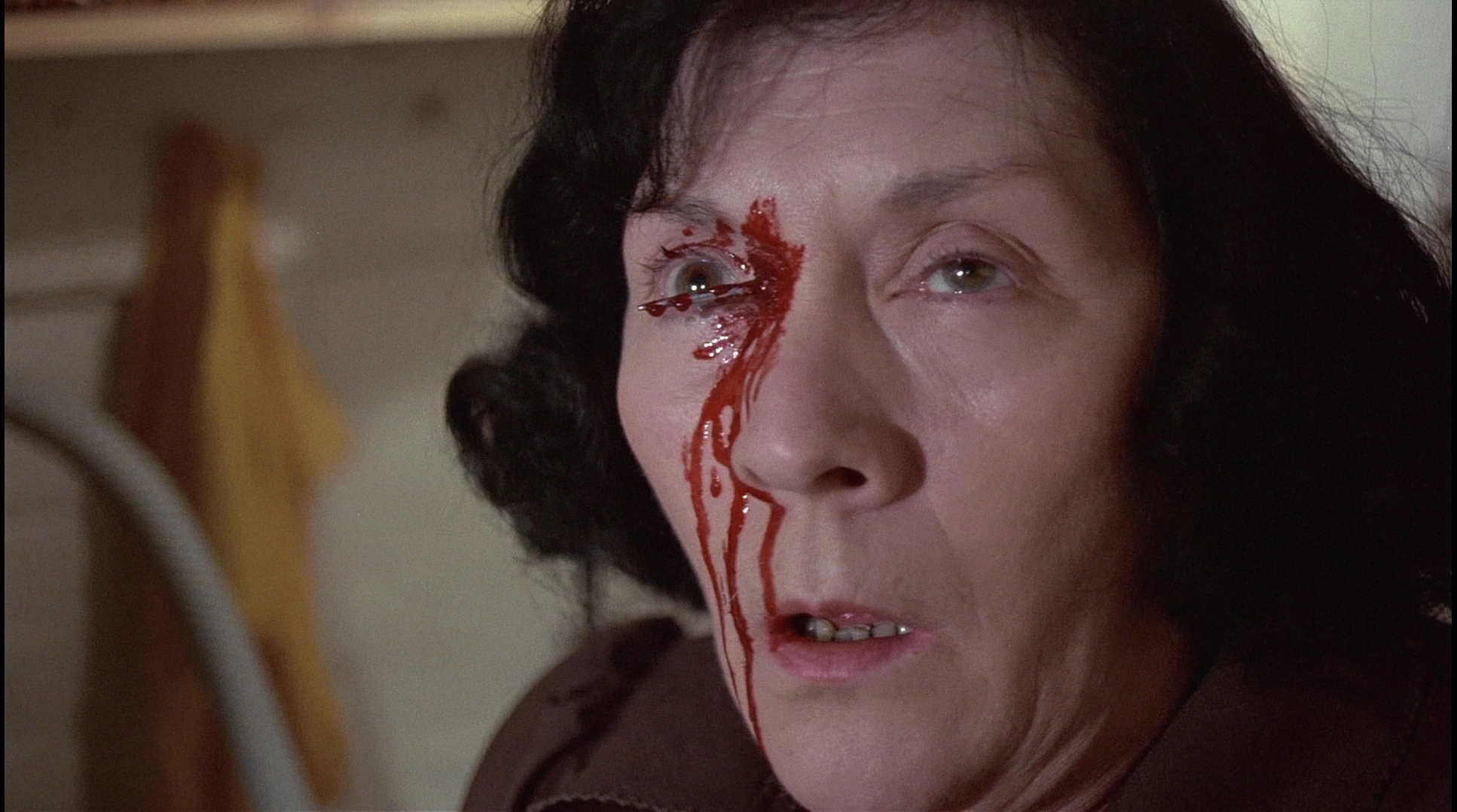 Of all of Walker's horror output, this one has easily fared the worst on video before its Blu-Ray resuscitation. The Anchor Bay UK and Media Blasters versions were taken from a sick-looking open matte transfer with very weak colors (click here for a sample shot comparable to one of the new frame grabs here) and even weaker black levels; it was a minor step up from the comparatively scarce VHS versions, but not by much. The Blu-Ray version will definitely come as something of a shock, as it reveals the film to actually be quite well shot and colorful throughout. Extras-wise it's a similar story here with the previous Walker commentary carried over (this time moderated by Jonathan Rigby) while a new 13-minute HD video featurette, "Slasher Serenade," features Walker and Jones looking back at the making of the film. Again the two extras match up well and deliver plenty of fun info: Jones' female fans were aghast at his dropping of the "f bomb" in the movie; Walker's intention to make this a more straightforward "terror film" (his preferred term) given Jones' older fan base; and of course the mind-boggling original idea for the film to star Bryan Ferry.