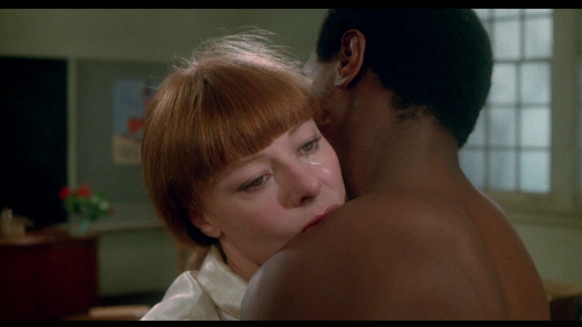 creeds, so she decides to start therapy and finds herself on the receiving end of advice about satisfying the body's natural craving for good, old school lovin'. Enter Rafe (Neon Maniacs' Lafayette), a black high school football jock and part-time janitor, who rubs his crotch and makes lewd suggestions to Evelyn after her class leaves. She doesn't seem to thrilled, so, in the first of many startling narrative gear shifts, he graphically rapes her for several minutes on her school desk. Traumatized at first, Evelyn comes to realize that have been exactly what she needed, so she and Rafe start a decidedly unhealthy fling with each jockeying for dominance.
