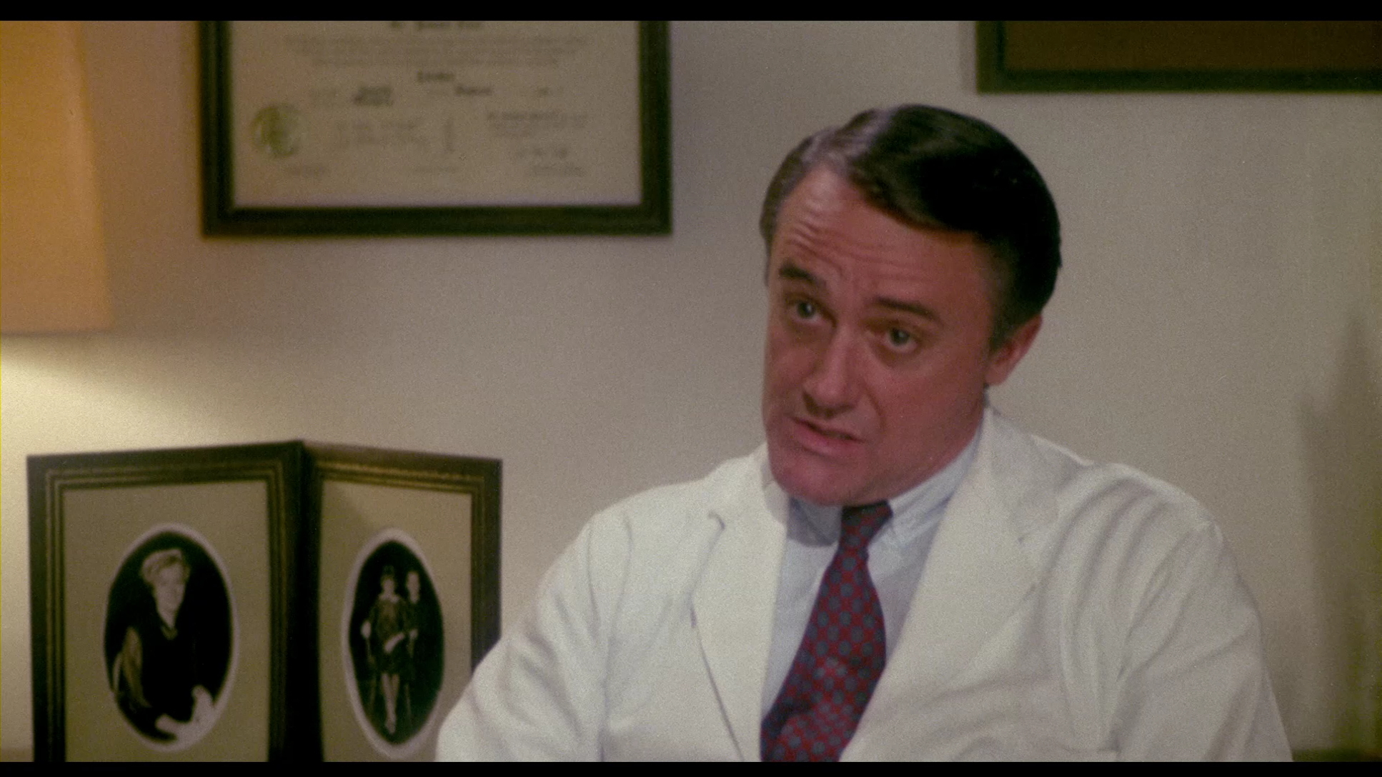 Rather deceptively, the opening hour of the film is a downbeat but fairly restrained portrait of our title character, Evelyn Wyckoff, a buttoned-down schoolteacher played by Anne Heywood. She's never quite had a sexual experience (though she appears to be a magnet for philandering married men), and it doesn't help that seemingly every woman around her is completely obsessed with sex and never talks about anything else. Since this is apparently set in 1951, the ladies are especially taken with Marlon Brando in A Streetcar Named Desire, and all this carnal chatter just adds to her frustration. She decides to visit a physician, Dr. Neal (Vaughn), who theorizes she's on the brink of early menopause (at the age of 35) and promptly prescribes some hormone pills and Seconal before passing her off to a Jewish shrink, Dr. Steiner (Pleasence!). Evelyn prides herself on her open mindedness for all races and