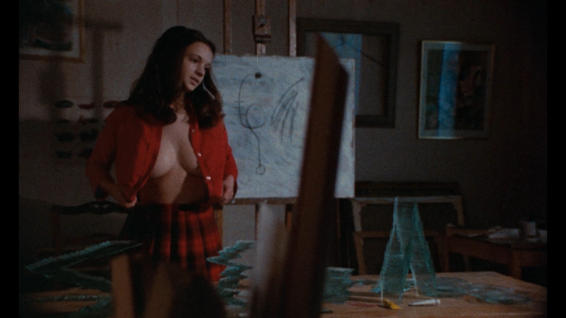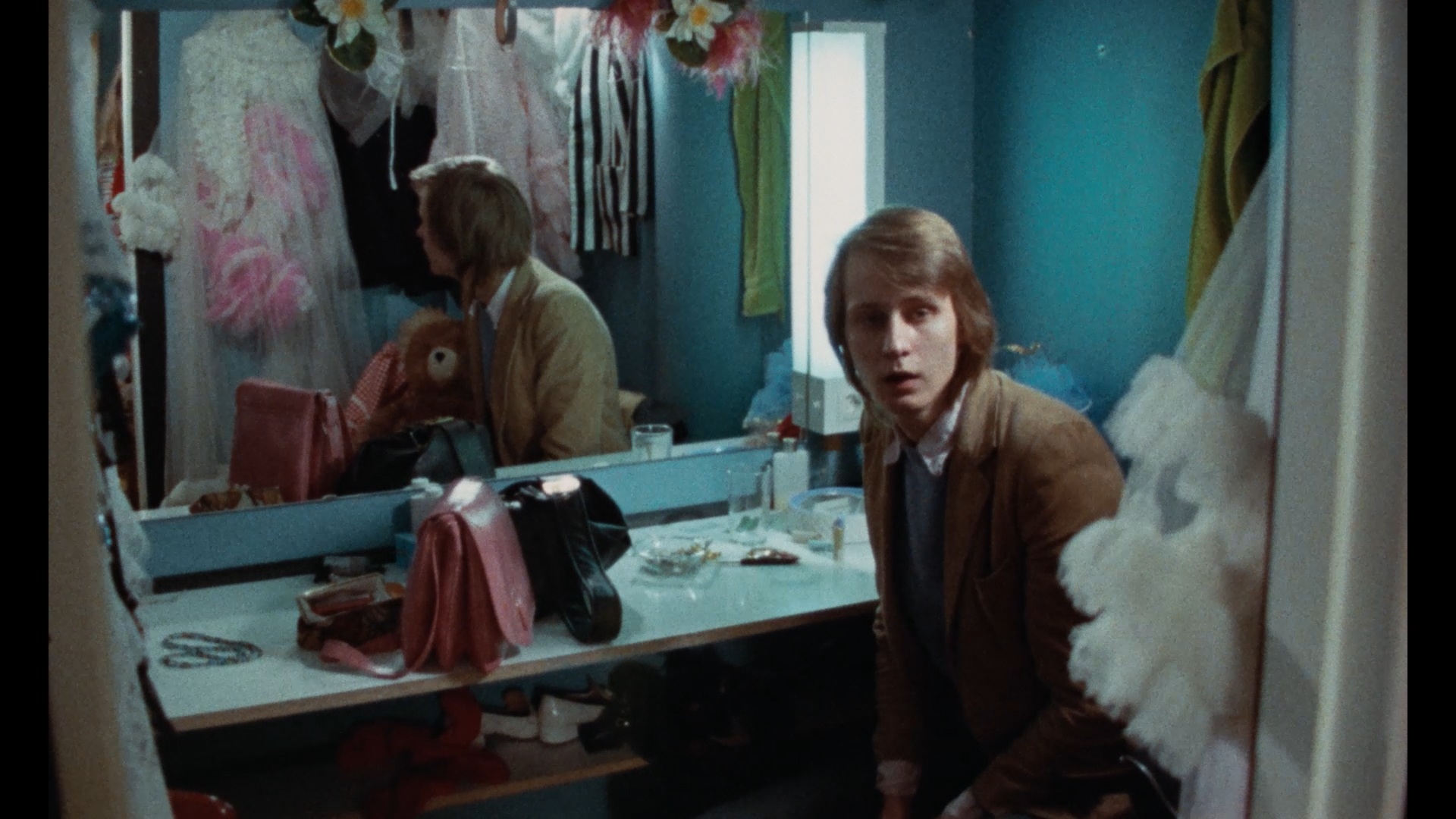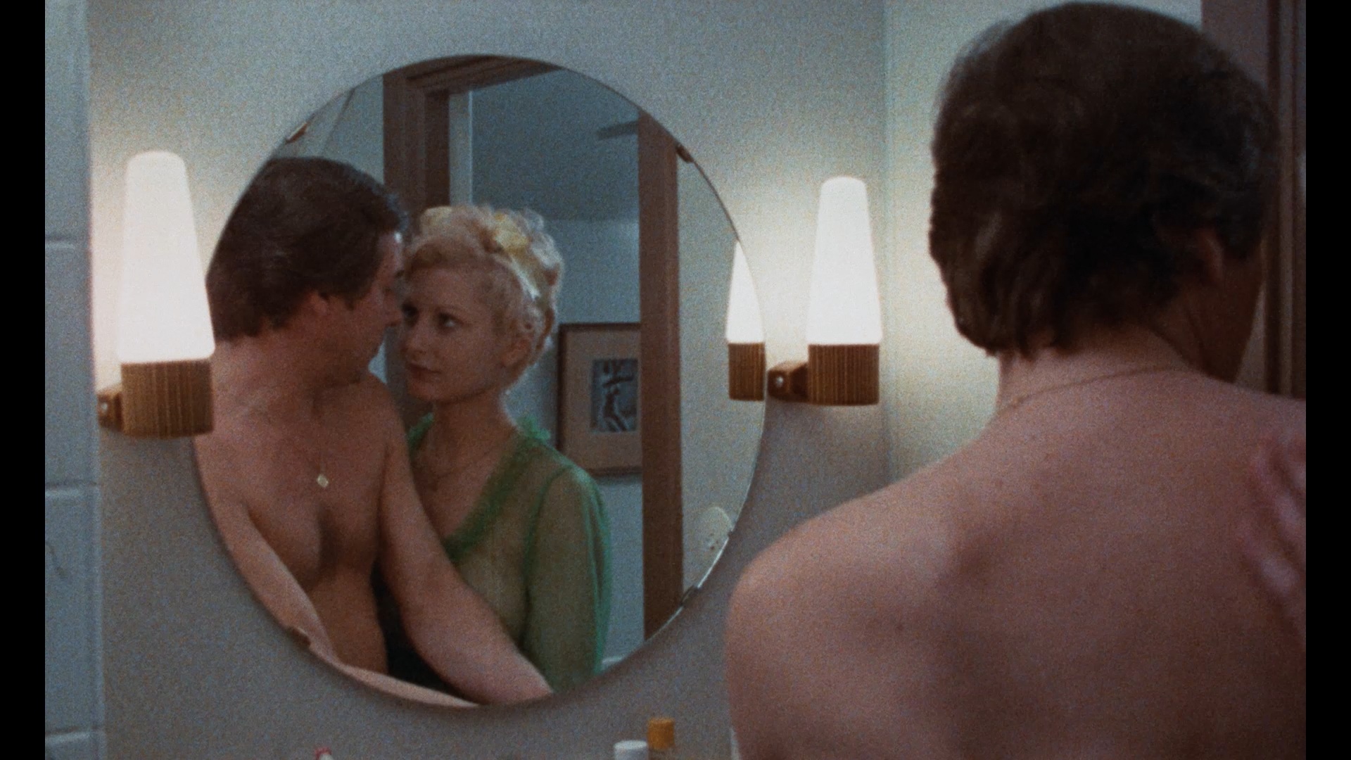 The result took a while to turn up on Blu-ray from Klubb Super 8 including its bow as a Vinegar Syndrome partner label in 2025. The presentation is light years better than anything we've had before; as you can see from the comparison below, the grungy teal tint is gone here, detail and colors are exponentially improved, and the image is no longer squished. The Swedish audio and the German dub are included here as DTS-HD MA 2.0 mono tracks with optional English or Swedish subtitles, plus an audio commentary with Jason Carter and Rickard Gramfors. It's a thorough and well-informed account of the making and promotion of the film including the vagaries of the title itself, the Stockholm locations, the two different versions of the screenplay including one that's much more explicit than what was shot, some pretty funny background details and optical trickery that will change how you watch the film, the co-production deal with French adult film company Alpha France, the backgrounds of