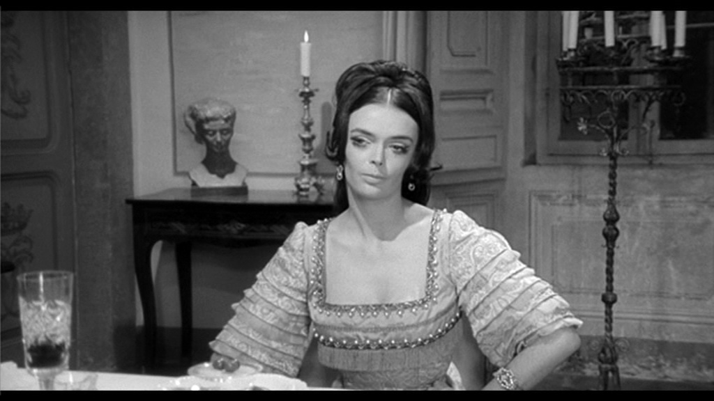 some of those scenes in Baba Yaga's lair have always been on the murky side), but it's nice to see it bumped up a few notches in quality. For the most part film grain looks fine throughout (and way more natural than the DVD), though a handful of shots look a little slicked down, like when Valentina first crouches down over the dog in the road. It's definitely on the better side of Italian-sourced HD transfers of late though and marks a substantial upgrade across the board. Interestingly, there's also a sliver more information on the left side of the frame and an equally minuscule amount missing on the right, for whatever reason. The audio options are also substantially beefed up here, with both the English and (for the first time in America) the Italian track provided in DTS-HD mono. Two optional English subtitles are provided, one for the English track and another, very different one translating the Italian dialogue; try