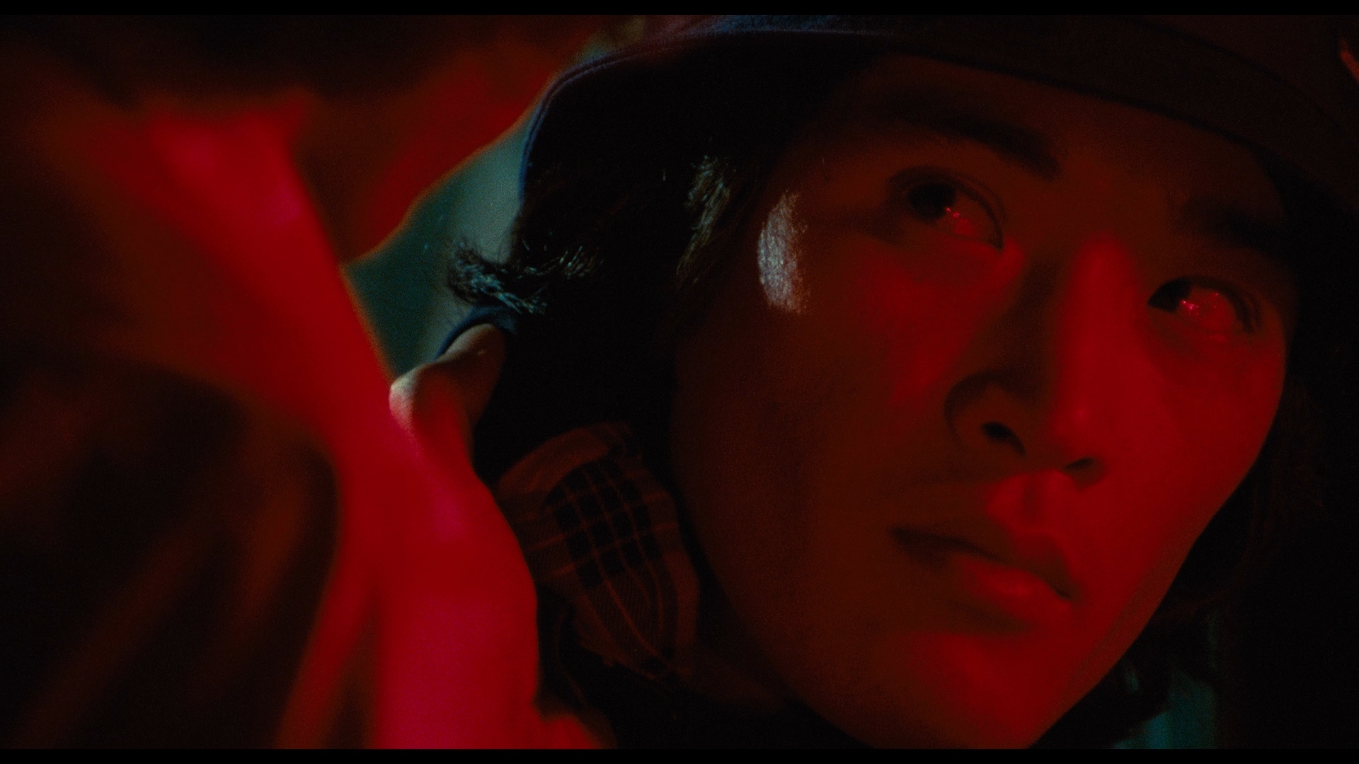 The last film made by Murkawa for production company Kadokawa (who insisted on shortening his initial cut), The Beast to Die hit DVD in Japan early on in 2000 with a remastered version later in 2007, not to mention VHS releases and occasional late night TV broadcasts. Fansubbed options have been around for a long time, but the 2025 Radiance Films Blu-ray (in both the U.S. and U.K.) is easily the way to go with a fresh, much-improved English translation for the subtitles. The transfer here is from a 4K restoration by Kadokawa used for their earlier Blu-ray release in 2024, which was strictly for the Japanese market and not English friendly. The quality is excellent with fine detail and nice reproduction of the tricky color scheme which uses stylized color schemes in some shots and variations in film stock with a distressed look for the flashback combat footage. The LPCM 1.0 mono Japanese track sounds very good, though if you've heard the soundtrack release, it's too bad this wasn't mixed in stereo at the time.