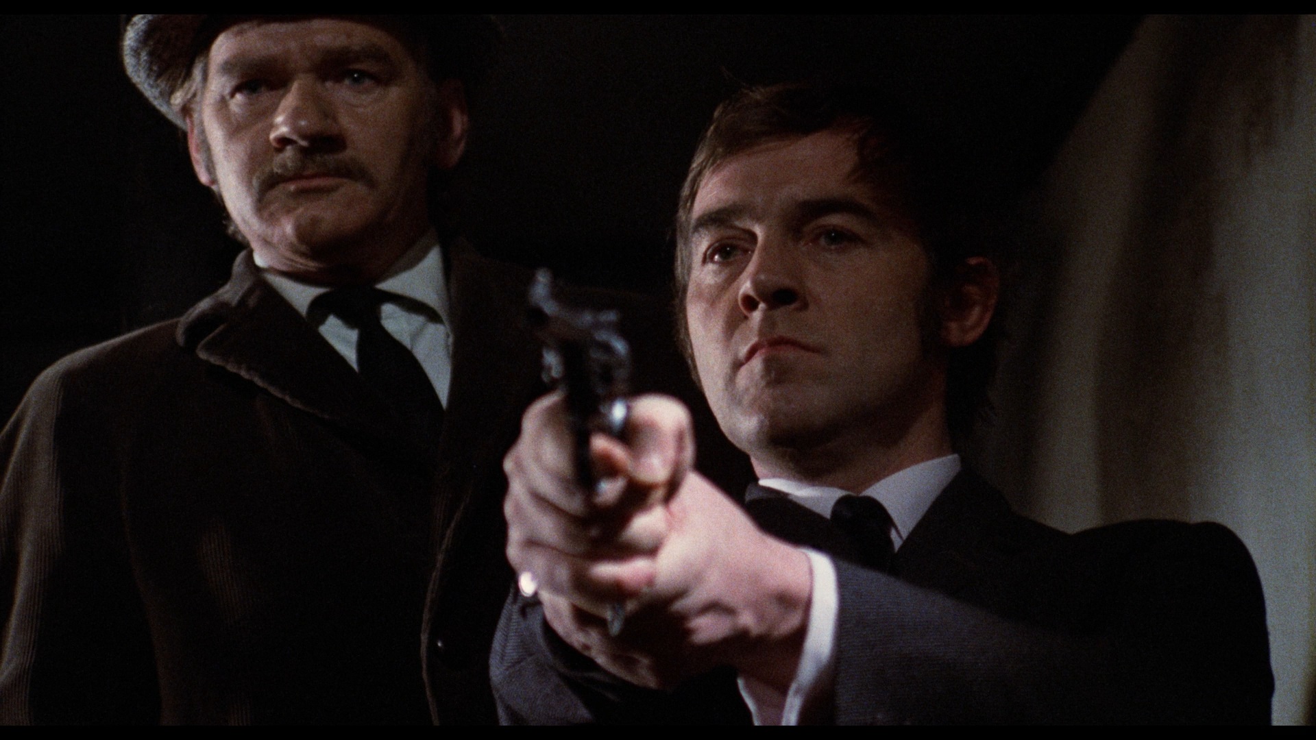 Raven will never give Vincent Price a run for his money in the horror ham sweepstakes, but he gives it his all in a film that loads on plenty of oddball twists and bizarre red herrings along with enough mayhem to make this a respectable entry in the early '70s British horror canon. Cinematographer Peter Newbrook (a vet of UK films like The Black Torment and That Kind of Girl) does a solid job here, especially with the brutal and wildly stylish opening scene, and the grotesque imagery is