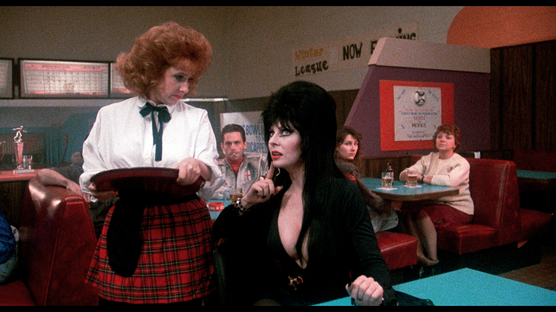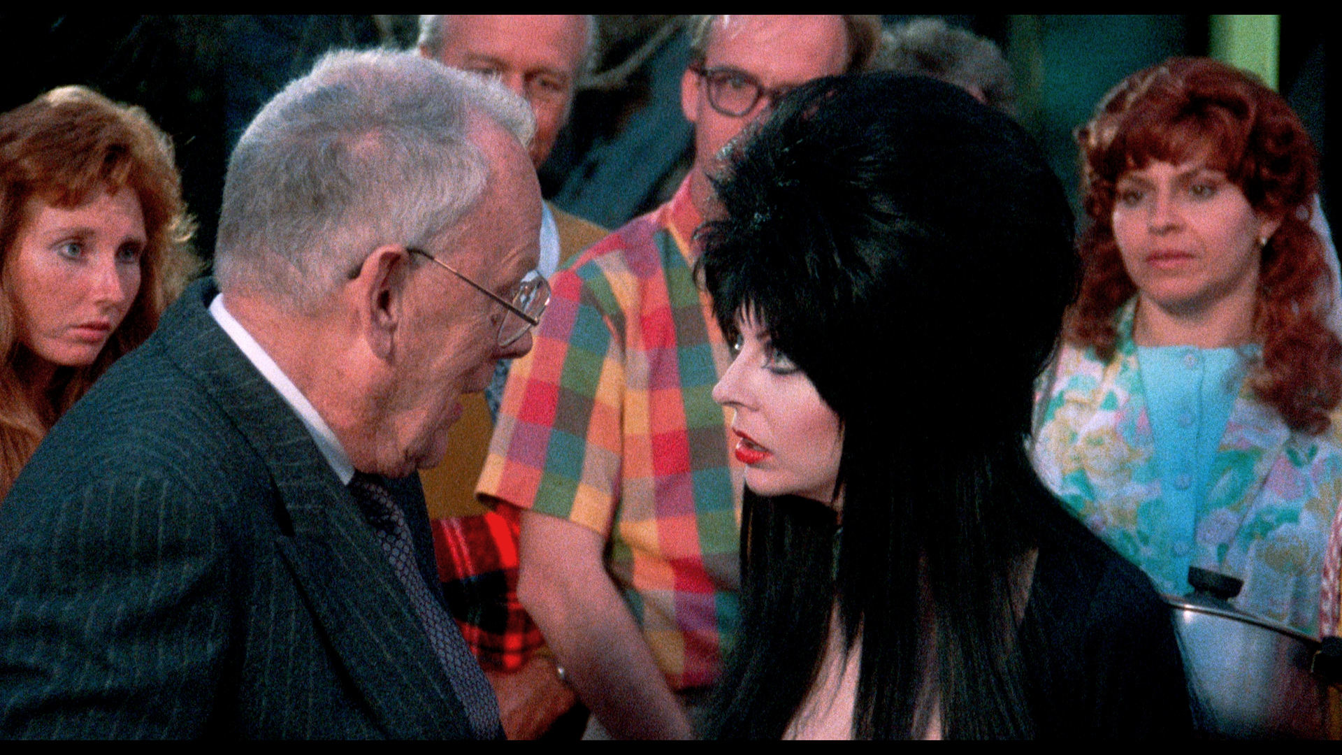 When her L.A. hosting gig goes sour after a screening of It Conquered the World thanks to a gropey new boss from Texas, Elvira decides to reinvent herself as a Vegas act thanks to a new inheritance from her great-aunt, Morgana ("Is that timing or what?"). However, to claim it she has to travel to the ultra puritanical town of Falwell, Massachusetts,