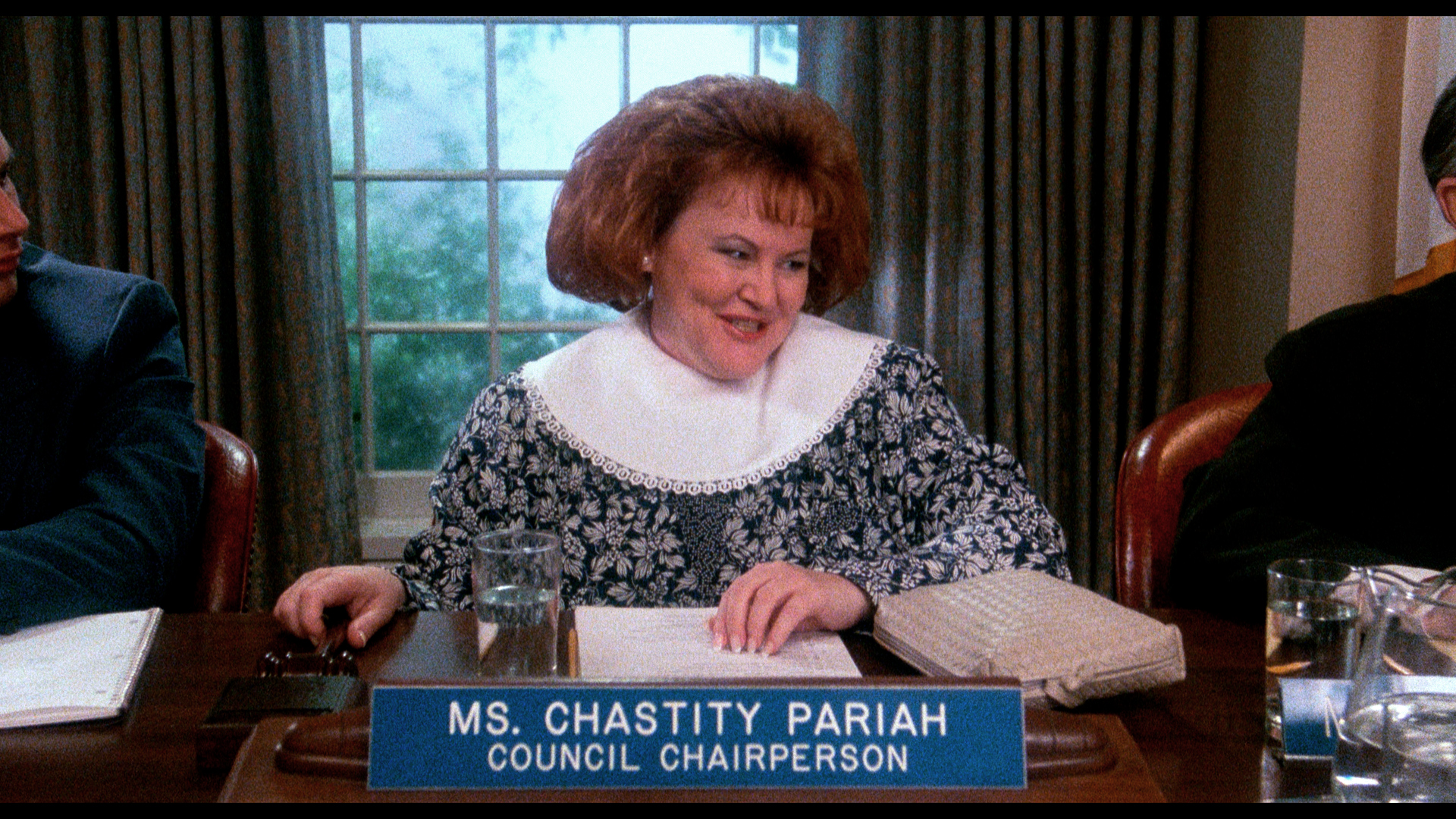 The film can be watched with a very blooper-filled intro by director James Signorelli (1m10s) as well as three audio commentaries, the first (and oldest) with Peterson, McClurg, and actor John Paragon, the second with Signorelli (hosted by Tony Timpone), and the third with Elvira webmaster Patterson Lundquist. There's some understandable overlap at times between the three but they're all loaded with stories and trivia about the film including the potential casting of Brad Pitt in a key role, the