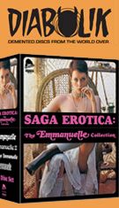 cultural significance of the film and its effect on their careers and financial situations. Jaeckin drops out from the other two discs, which continue with featurettes (9m7s and 9 minutes) explaining the evolution of the series and what necessitated its conclusion with the third film, at least until the bizarre offshoots started turning up. Each disc also contains a theatrical trailer, while the second and third film throw in radio spots as well. When the Anchor Bay version went out of circulation, StudioCanal issued the trio in several different countries on Blu-ray with nice transfers along with French, English, and Spanish audio. Extras include the trailer, a fun Jaeckin/Rousset-Rouard interview (31m37s) called "Talking About Emmanuelle," and the 54-minute “An Erotic Success,” with both men and a slew of critics discussing the film’s release and censorship history as well as its cultural influence. A U.S. DVD reissue from Lionsgate features the same earlier transfer as the Anchor Bay release and has the “An Erotic Success” doc as well as a different half-hour featurette, and “Soft Sell” about the film’s distribution in America. In 2019, Kino Lorber issued the films on Blu-ray and DVD featuring the same StudioCanal-sourced transfers with English and French