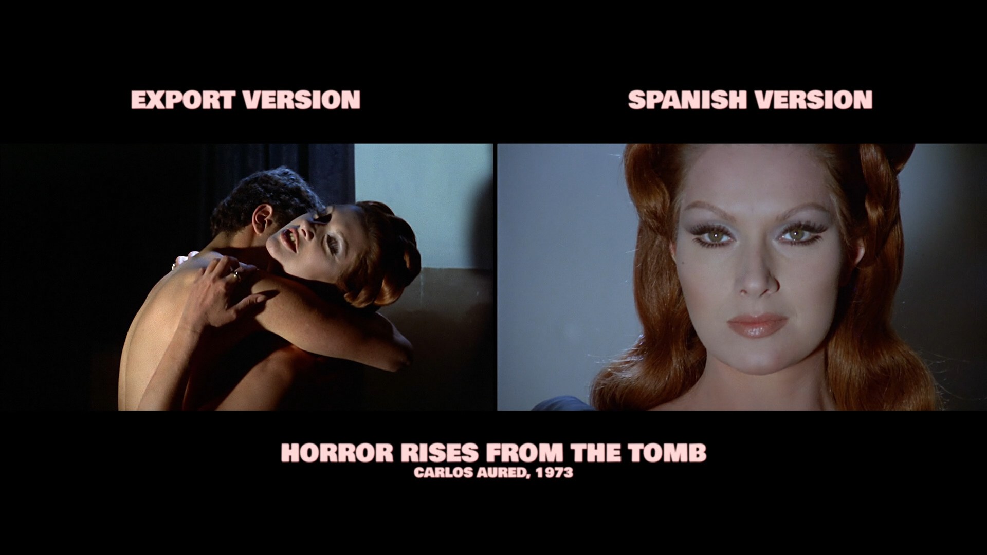 Pathfinder disc), and features both the English and Spanish tracks (DTS-HD MA 2.0 mono) with optional English-translated or SDH subtitles. As with several other Spanish productions intended for global play, this was shot mostly in English with Lindfors providing her real voice and everyone else dubbed in post; however, it's worth watching both versions as the Spanish track has some significant additions and departures in the dialogue including a fascinating final couple of lines for Lindfors. The first of two new audio commentaries covers the Gothic themes in the film and Spanish horror cinema in general, Franco-era censorship, and the production personnel, as well as the film's Euro-cult reputation and the complex motivations of the various characters. The second commentary by Rod Barnett and Robert Monell contextualizes the film within the strain of psycho thrillers going back to the '60s and as a notable transitional film in the history of Spanish horror on its way to post-Franco mania within a few years. They also touch on the film's release history, Hill's and the actors' background, and the ultimately tragic production history. In "Censorship and Curses" (30m11s), Dr. Álex Mendíbil takes an in-depth look at the mystique surrounding the film, plenty more about Hill, and the commentary on old and modern Spain that runs throughout his work. Also included are an English trailer and 1965's Luciano (39m26s), Hill's black-and-white film school thesis project in which a TV program sorts through the grim murder of a child by