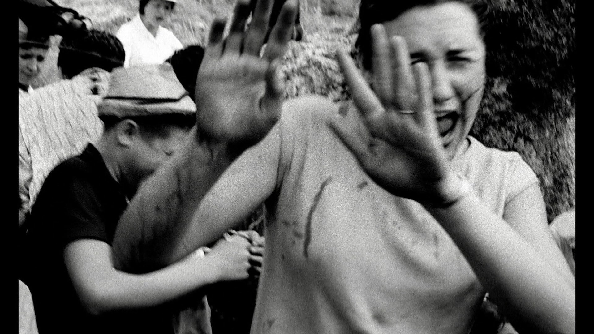 Marco Ferreri (think The Exterminating Angel or La Grande Bouffe reconfigured as a drive-in movie), but the story then takes a number of increasingly bizarre and irrational turns: one unhinged survivor taking to crawling around unclothed and lurking in the corner in his pig mask, the spooky gatherings of the titular people outside the house at night, and especially the incredible final five minutes.