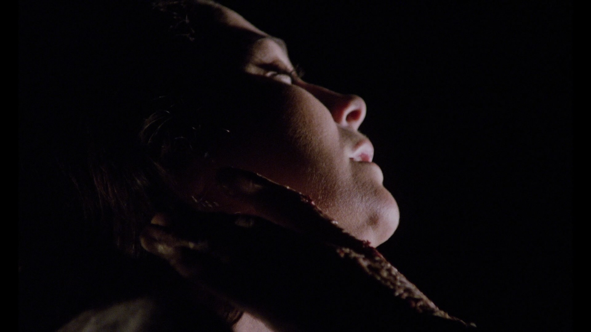 and features loads of splices, lines, and random debris. The opening minutes fare the worst (the title card barely appears on screen), but after that it gets smoother with the second half being downright acceptable. That damage of course causes several seconds to fall by the wayside here and there, bringing the running time up to a little over 78 minutes. The English-language version used for the VHS release clocks in about three minutes longer, so that edition is presented here as well (as the "portable grindhouse" version) in all its analog '80s splendor. Flat letterboxed at about 1.78:1 for most of the running time with a few open matte shots here and there, it looks exactly like a lower-tier tape title from the period; don't get your hopes too high, but if you want to see the film without any damage-related problems, this "retro" option may be preferable. The U.S. theatrical trailer is also included (from what appears to be a VHS source) along with the usual Code Red bonus trailers, with Family Honor playing before the feature as usual. The back of the DVD sleeve carries over the US poster's baffling claim to the film being presented by Sean S. Cunningham (Last House on the Left), while the synopsis itself hilariously refutes it.