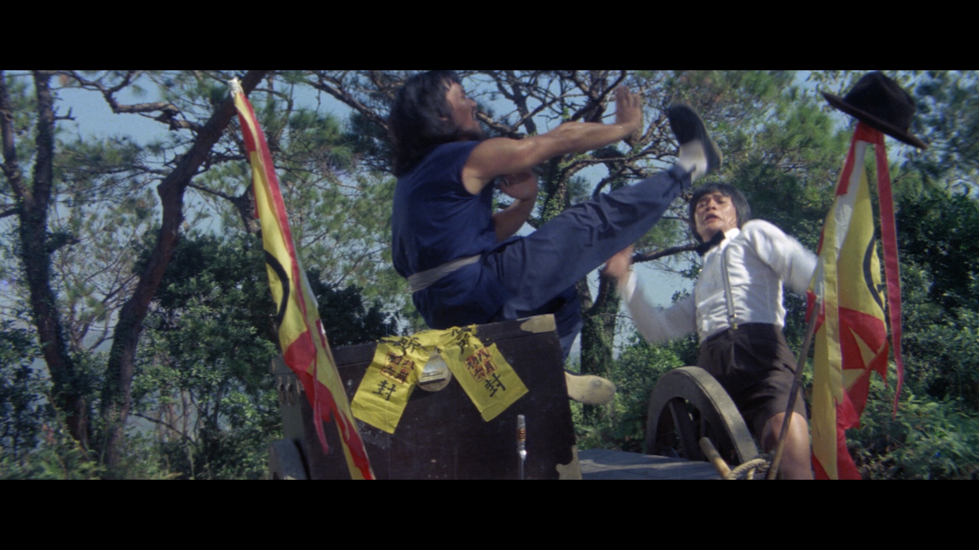 It's no wonder this one has been in circulation a lot over the years, though the usually English-dubbed transfers have been really dire until the 2025 Blu-ray release from Severin Films with a nice widescreen scan from the original negative. An opening disclaimer notes the 2K scan (or 4K according to the press announcement) does what it can with the damaged source, but the color here is gorgeous and makes up for the occasional scratch or bit of water damage you see popping up. It's one of the few films from HK distributor Goldig Films Ltd. (who folded a year later) to get the