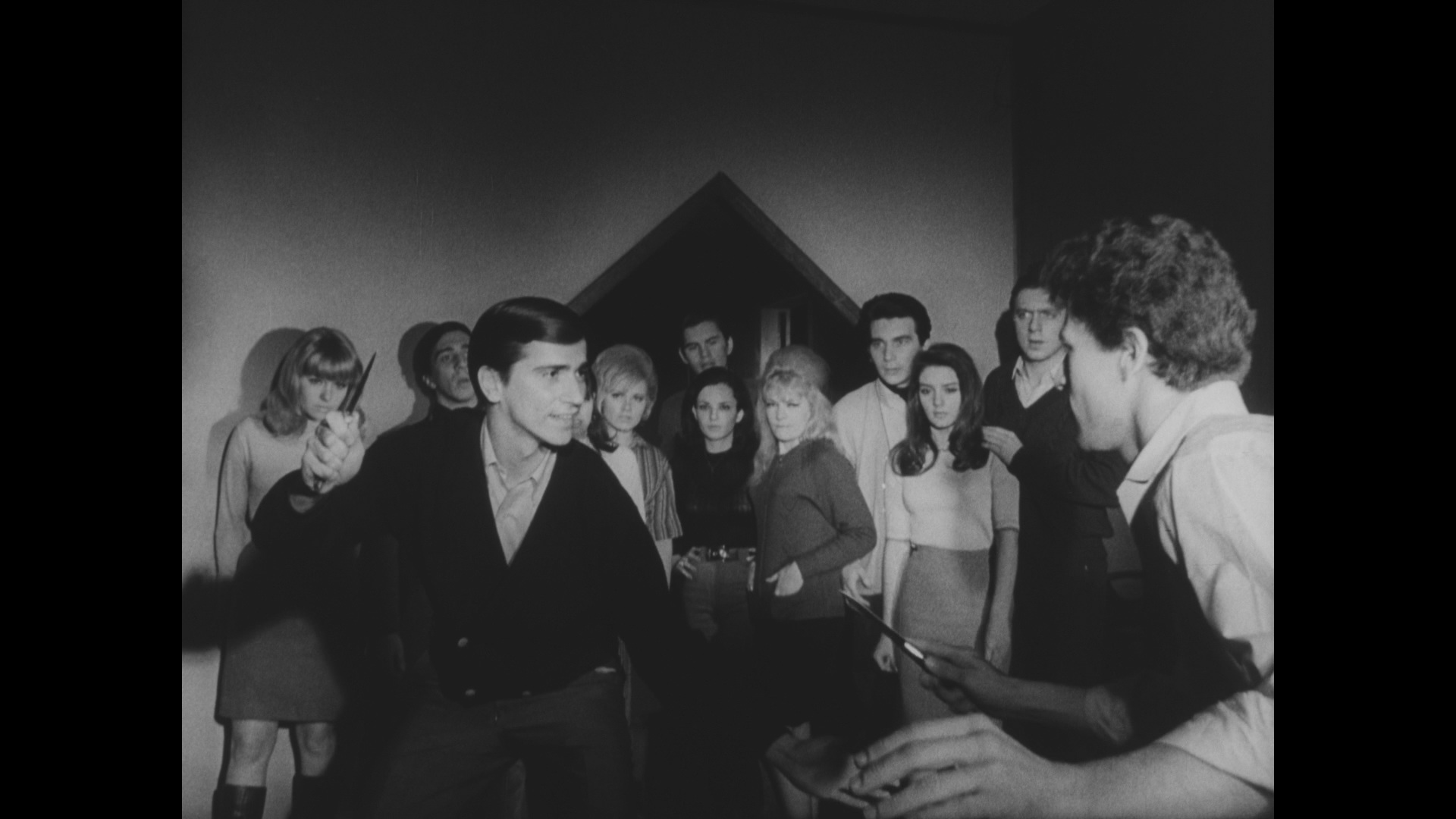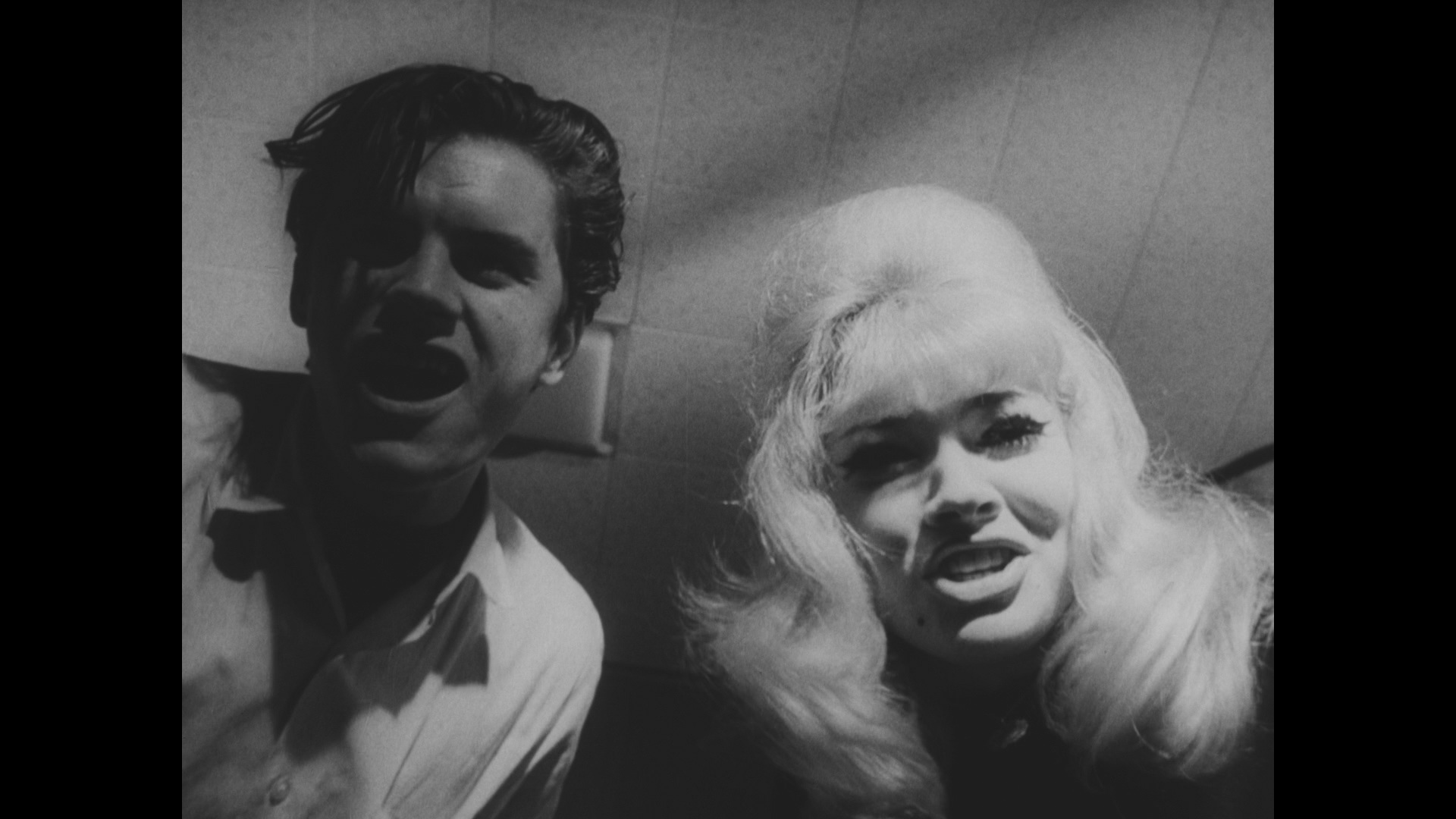 The aforementioned DVD of this film, which was taken from a somewhat murky but okay print, also featured a batch of trailers (both both films on the disc plus The Cats, The Crawling Hand, Damaged Goods, Four Guys and a Gun, Our Man Steel, and The Weird Lovemakers) and "delinquent goodies" including three intermission breaks, a gallery of exploitation art, and two shorts, "Headed for Trouble" (32m52s) and "Dance, Little Children" (25m7s). In 2025, AGFA and Something Weird added the film to their line of Blu-ray ugrades featuring a new scan from the SWV 35mm print. The detail is much sharper here, element damage is virtually nonexistent, and more image is visible in the frame, though the black levels head the other direction here and are more on the pale and milky side. Optional English SDH subtitles are provided for the
