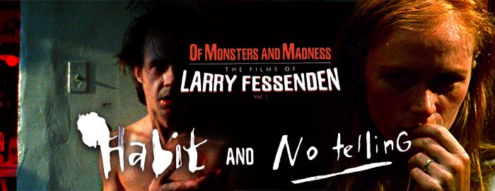 The 24-minute featurette, original short film and its making-of, and a video trailer are also included, plus two more archival featurettes made as part of a Glass Eye retrospective, 2016's "Looking Back on Habit" (15ms) and 2015's "Gothic Corners: Habit's New York City" (3m41s). Two big new additions here are audio interviews with Snaider (54m34s) and actress Heather Woodbury (24m32s) conducted with Fessenden, played over scenes from the film and quite a fun listen as they reminisce about how they were brought onto the film (which featured an ad placed during pre-production), the longer history he and Woodbury had together, their thoughts on rewatching the film later, and the elements of their own personalities and lives they brought to the film. The set also comes with a 40-page perfect-bound book featuring essays by Mallory Andrews ("Suicide on the Installment Plan"), Justine Smith ("Filling the Void in Larry Fessenden's Habit"), and Isaac Feldberg ("Paradise Lost").