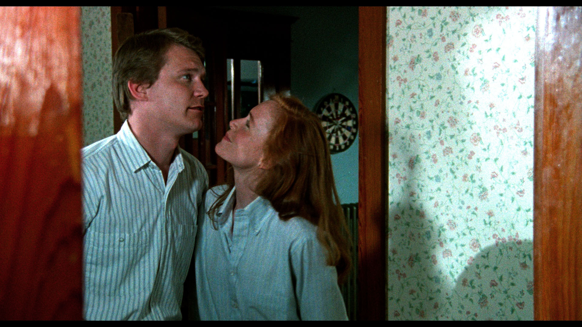 The Vinegar Syndrome UHD and Blu-ray upgrade looks even better with some dynamic color schemes on display (especially thanks to that Dolby Vision again on the UHD), and here it also fixes a small but annoying element of the previous scan during which transitions from night to daytime (or vice versa) didn't time correctly for a few frames; see the third frame grab comparison below for one glaring example during a morning shot. Again the DTS-HD MA 5.1 and 2.0 tracks are here and sound great, with SDH subs, and the earlier Fessenden track is included. Here he turns up again for a new track