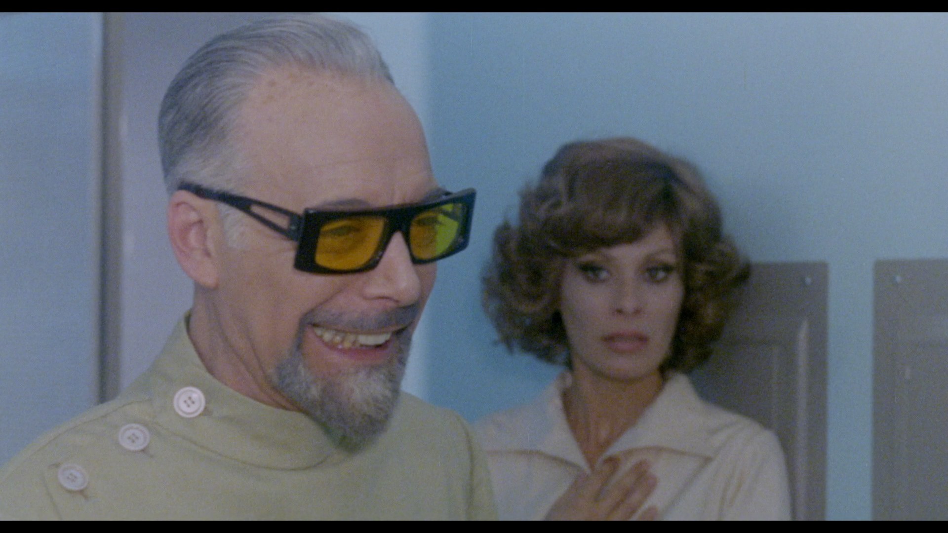Spanish track and the English dub are both here in fine-sounding DTS-HD MA 2.0 mono options with English subtitles, and the two make for dramatically different experiences. The Spanish-language version plays fairly sincere despite the outrageous grace notes in the plot, while the English dub is absolutely nuts with a crazy quilt of accents ranging from British to... Brooklyn, or something. If you're watching this with friends, the dub is definitely more of a party option. A new audio commentary from the Naschycast's always reliable Rod Barnett and Troy Guinn covers Klimovsky's career to this point, the Argentinian roots of multiple players, the stage and screen careers of the actors, the possible intentions behind the story, the unsettling relevance of it to Spain, and the way it plays today in very different times. A frequently amusing interview with de Blas (41m8s) goes into his life and career including growing up in Cordova, seeing the industry and horror genre ascend thanks to Paul Naschy, his numerous collaborations with Klimovsky ("he was like Santa Claus"), and the nature of shooting in English versus Spanish as well as getting frequently slotted into villain roles. Then the Sitges Film Festival's Angel Sala appears to talk about the film (20m14s) including its creation during the waning days of the Franco regime when the transition to democracy was about to begin, the busy industry at the time that was building up fans both locally and abroad, and this film's distinctive "cinephile" place in the filmography of its director including its controversy and middling box office reception. Finally director-film historian Victor Matellano appears to talk about Menta (25m12s), including his own encounters with the actor, the wide range of stage and screen credits, and the thespian's personality and connections to some of Spanish horror's biggest names.