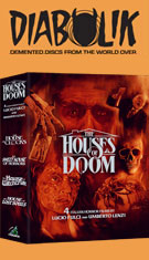like Fangoria, Deep Red, and GoreZone as standalone movies that would be impossible to see for a while, particularly the four-film Brivido Giallo cycle directed by Lamberto Bava. Noting the success of the unrelated La Casa ("The House") films in Italy inspired by that title slapped on Sam Raimi's The Evil Dead, Luciano Martino kicked off another string of made-for-TV horror movies, The Houses of Doom (Le case maledette), with Bava originally set to direct along with Lucio Fulci and Umberto Lenzi, each handling two films. When Bava had to drop out, the remaining directors went ahead with their two contributions using House in the title, but the results proved too extreme for the small screen with a fair amount of gushing blood and some discreet nudity as well. Unseen in Italy for years, the movies went to Japanese VHS and hit the bootleg circuit before the two Fulcis made their way to American DVD from Media Blasters' Shriek Show in 2002. All four of them were issued as drab-looking, non-anamorphic DVDs in the U.K. from Vipco, but you can now chuck all of them aside thanks to the deluxe The Houses of Doom Blu-ray set from Cauldron Films, featuring much-needed remasters of the shot-on-16mm films now looking much healthier and more colorful than before.
