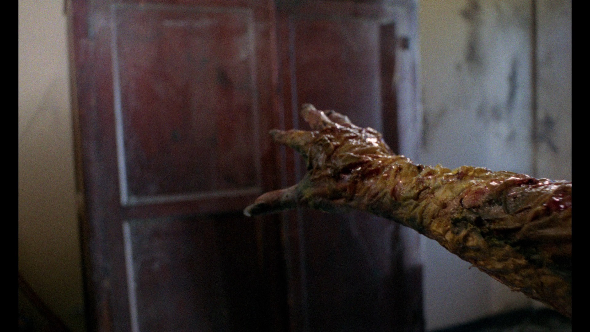 Italian track here is a godsend as it's much easier on the ears. Here Ercolani and Howarth provide a new commentary going through Fulci's career at the time, Monreale's work with him and elsewhere, the production background of the series, and plenty more. In "Fulci House of Horrors" (16m43s), omnipresent set designer Massimo Antonello Geleng covers his numerous Fulci projects, his admiration for the director going back to his comedies and other genres, and the resourcefulness required on films like this to come up with eye-catching visuals for pocket change. In "Sweet Muse of Horrors" (28m55s), Monreale speaks about her career starting with a fortuitous stroll with her kitten that led to multiple Fulci projects and permanent Euro horror legend status. "Editing for the Masters" (18m5s) has editor Alberto Moriani discussing his mentor Luciano Martino, his genre-hopping assignments in the '80s, and his work for Fulci and other filmmakers like Antonio Margheriti.