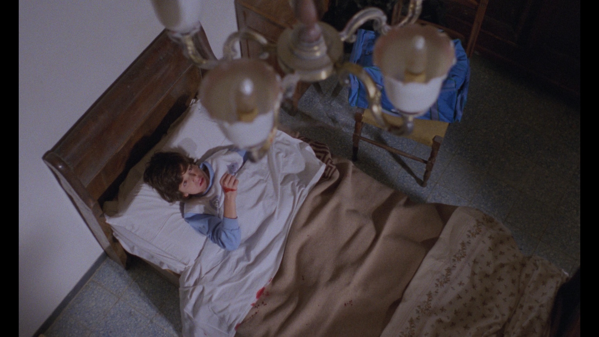 children explored in his more widely seen House by the Cemetery and Manhattan Baby, among others. As this is later period work for the director, the film's execution is bumpier than his golden age classics but still bears the unmistakable stamp of his gore-soaked obsessions. Things start with a bang, literally, as a married couple is slaughtered in their home, with the husband's head pulverized against a wall and the wife viciously knifed. The children of the deceased, Sarah and Marco, become the charges of their aunt and uncle, Marcia (The Beyond's Monreale) and Carlo (Rats: Night of Terror's Bretigniere), at the family estate. Unfortunately the grounds seem to be haunted, much to the children's delight, and cruel mishaps befall visitors including a real estate agent and the neurotic gardener (Demonia's Lino Salemme). Marcia is terrorized by the ghostly presence, which appears to manifest itself as a glowing, animated swirl of light; however, the spirits turn out to be as protective as they are ruthless, and the true villain is soon unmasked.