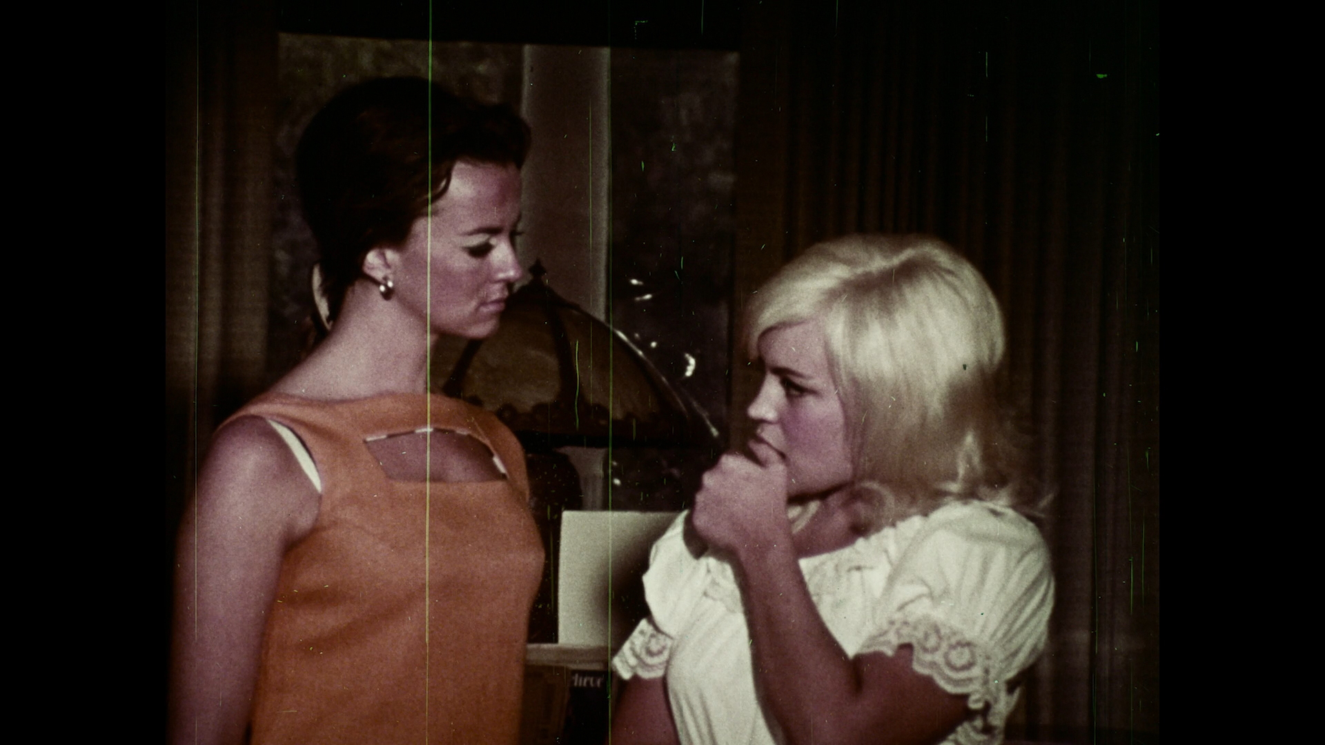 Finally you get an entire bonus feature film here, 1969's Angelica, the Young Vixen (60m52s), another Vega International curio in which a peroxide blonde jaibait vixen, Angelica (Dixie Donovan), lures an older guy, Ned (Vincent Ricco, a.k.a. possible real director William Drake), into a violent tryst outside a roadhouse (where gypsies play accompaniment to live nudie shows). She gets out of hot water and a sentence to a foster home by shacking up with the judge (Lou d'Jena), who has a perilous heart condition, bedding his daughter, and developing an apparent allergy to clothing. How long can her scheming hold out? Trashy and filled with sweaty atmosphere, it's a typical softcore programmer from the days before hardcore took over, as represented by a small role for actor Richard Smedley (The Abductors, Brain of Blood) who crossed back and forth over the sex film divide and also pops up uncredited in Mummy as a cop. The print here is the only one in existence, and despite a heavy amount of damage, it's great to have here for posterity and hugely entertaining if you're a softcore exploitation fanatic. This one also comes with a thorough audio commentary with Vinegar Syndrome's Joe Rubin, exploitation film researcher Shawn Langrick, and Severin's Andrew Furtado about the puzzling circumstances behind this film, the path it took to winding up on this release, the connection to the amazing Las Vegas Strangler, and the "two Oliver Drakes" to bear in mind here when you try to figure out who actually made this. The background on Bill Drake alone is astounding, making this essential listening to learn about the dustier corners of '60s fly-by-night exploitation.