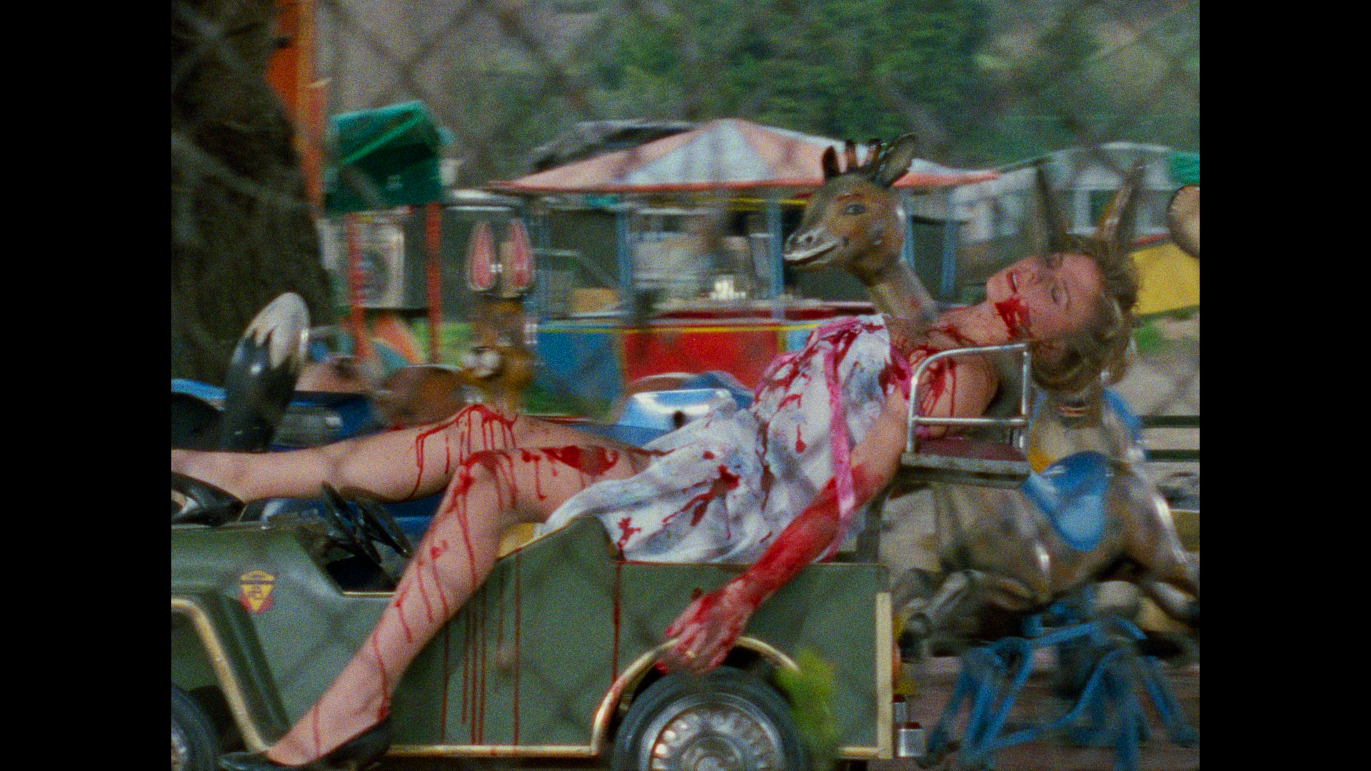 Reasonably easy to find on the gray market over the years, this one hasn't had many official releases with the best option for a long time being the Dutch DVD taken from a very dated, drab-looking old master in Italian with optional English, Finnish, French, Norwegian, Swedish, or Dutch subtitles. (No English dub was ever created, despite several of the cast members performing their lines that way.) A far superior option is the unlikely but welcome 4K UHD and Blu-ray set from Vinegar Syndrome in 2026, featuring a very colorful, crisp scan from the 16mm camera negative that looks about as impressive as this ragged production possibly could. And yes, the HDR-compatible MassacreDolby Vision does bring out some nice, deep blacks and vivid reds in particular. The DTS-HD MassacreMA Italian 2.0 mono track sounds fine and comes with optional English subtitles, plus a new audio commentary by Eugenio Ercolani and Troy Howarth who really come to grips with the philosophical underpinnings and subtle social commentary of the film. Well... maybe not, but they do a fine job of covering Bianchi's career to this point, the production history, its place in the Fulci-ish line, the state of the giallo in the last stretch of the '80s, and much more.