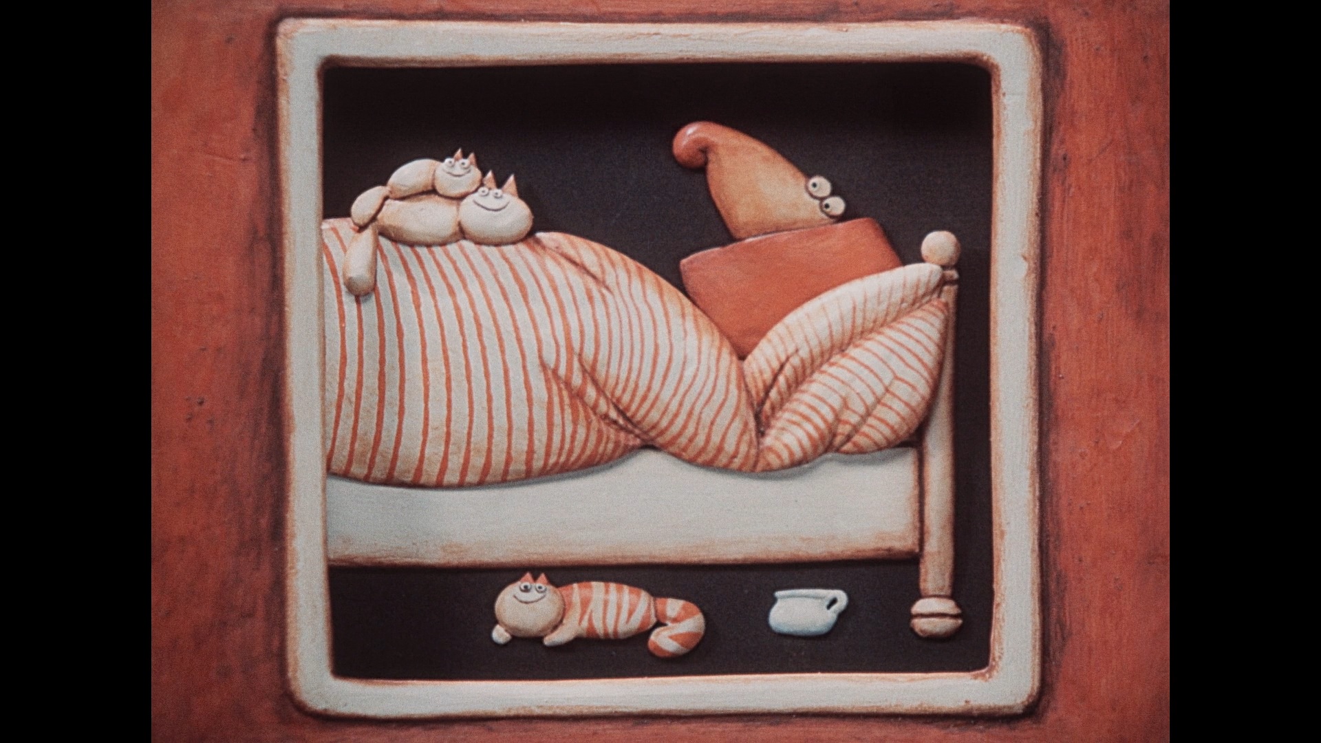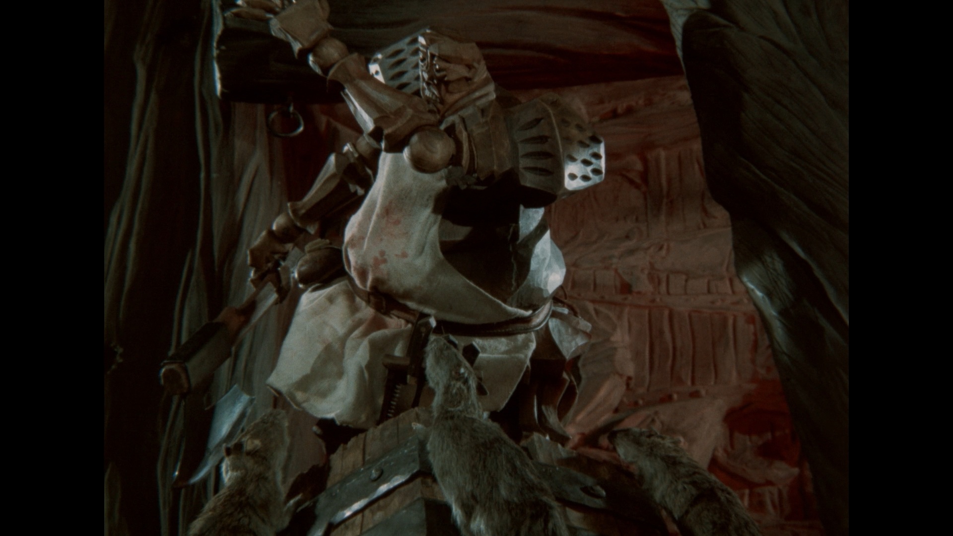 In 2003, Deaf Crocodile added The Pied Piper to its impressive roster of European animated discoveries with a new restoration that presumably reflects the subdued, earthy color scheme and allows you to savor the details of the character sculpting and backgrounds more than ever before. The DTS-HD MA 2.0 mono audio sounds very good, and the film also comes with a commentary featuring label regular Irena Kovarova and critic Peter Hames who do an excellent job of contextualizing the film within the history of Czech animation, comparing it to other iterations of the source story, and covering the director's career in general. A lengthy and very genial interview with Barta (51m39s) finds him chatting with Deaf