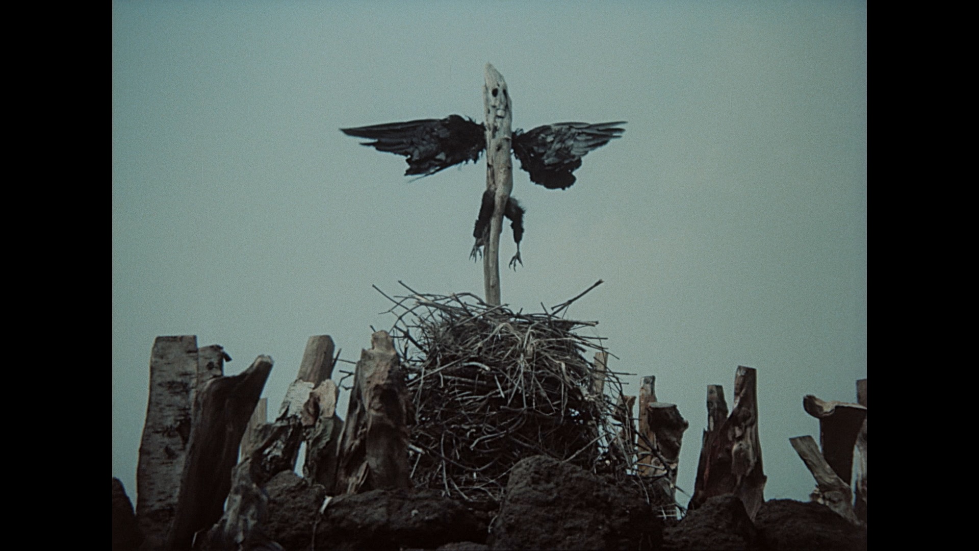 apartment design takes shape before your eyes. Fans of folk horror will definitely get a kick out of 1983's A Ballad About Green Wood (10m39s), an ode to nature with animated firewood logs spending the seasons summoning and unleashing a creature with feathered wings before the cycle begins again. The real standout here for horror fans though is 1987's The Last Theft (20m58s), which uses a wild bleached-color technique for a spooky vignette in which a thief breaks into an apartment only to find himself at the mercy of a collection of supernatural adversaries. Finally in 1989's The Club of the Laid Off (25m14s), a collection of seemingly abandoned mannequins in various states of pop culture adornment come to life in a creepy imitation of daily human routines. The Vanished World of Gloves is carried over here as well to make marathon viewing easier, and you also get two substantial new video extras starting with a new Barta interview with Bartok and Kovarova (76m12s) speaking at length about his short film work including his first break into working as a director, the venues for his shorts, the various innovations he came up with along the way, and the ideas about society he wove into them including some obvious thoughts on state-sponsored living conditions. You also get a new visual essay, "Pushed to the Margins" (29m40s), a conversation by Kovarova and Hames edited by Ryan Verrill with a thorough tour through the short films using clips to show how the filmmaker's style changed over the years using the camera to push his cinematic language in new directions with each effort. As usual, the release is available as a standard edition or a limited 2,000 unit one featuring an exclusive slipcase and a lovely 60-page book featuring essays by Jonathan Owen, Walter Chaw, and Kovarova about the historical period covered by these films, their commentary on human behavior and social structures, and the tactile nature of the animation that gives them a fascination and charm that will never fade.