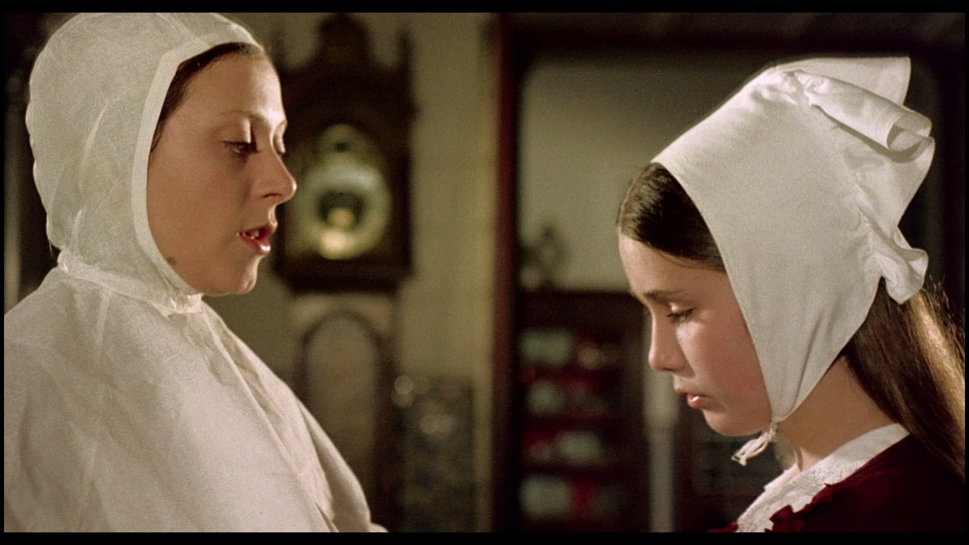 in German 5.1 DTS-HD and 2.0 Dolby Digital, English DTS-HD 5.1, Italian and Spanish 2.0 Dolby Digital mono, with optional English or Japanese subtitles. Extras include a 36-image gallery, trailers (this film, Love Camp, Doriana Gray, Voodoo Passion, Women in Cellblock 9, Greta the Mad Butcher, Swedish Nympho Slaves, Satanic Sisters, Wicked Women, Jack the Ripper, Downtown, and White Skin on Black Thighs), a Munich Film Museum appearance by Franco, Lina Romay, and Herbert Fux in 2001 (5m10s) with English or German subs, a "Memories of a Portuguese Nun" featurette (12m23s) with Dietrich, Franco, Fux, and Peter Baumgartner (with English, German, or French subs) chatting about Franco's directing technique and use of budgets with this film getting more resources than usual, and a 40m49s Franco audio interview from 1976 in German only. Image quality is excellent, taken from the original negative whose textless credits have been augmented with newly-created digital ones with those tell-tale glow effects.