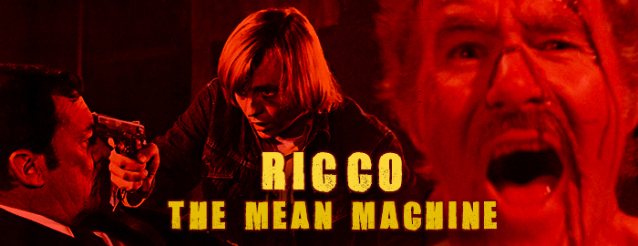 theaters and then on home video for years under a baffling array of titles. Initially produced under the title Rico which was then bastardized as Ricco and then christened on U.S. DVD and Blu-ray as Ricco: The Mean Machine, this one initially came out in Italy with the ridiculous title Un tipo con una faccia strana ti cerca per ucciderti (or "A Guy with a Strange Face Is Looking for You to Kill You"). Among its many aliases are the unforgettable Cauldron of Death (where it caught the eye of early The Psychotronic Encyclopedia of Film readers), Gangland, Heavy Dues, and The Dirty Mob. In the process it was also heavily censored at times with many versions coming in well short of the original 93-minute running time (usually around 89 or so, almost all diluting or removing the infamous gory castration scene). The film was also a high point for actor and Robert Mitchum offspring Christopher Mitchum, part of a '70s wave of movie star kids headlining movies themselves, who was having a crazy run of projects in Europe including The Summertime Killer and Murder in a Blue World long before he became a legend starring in Arizal movies.