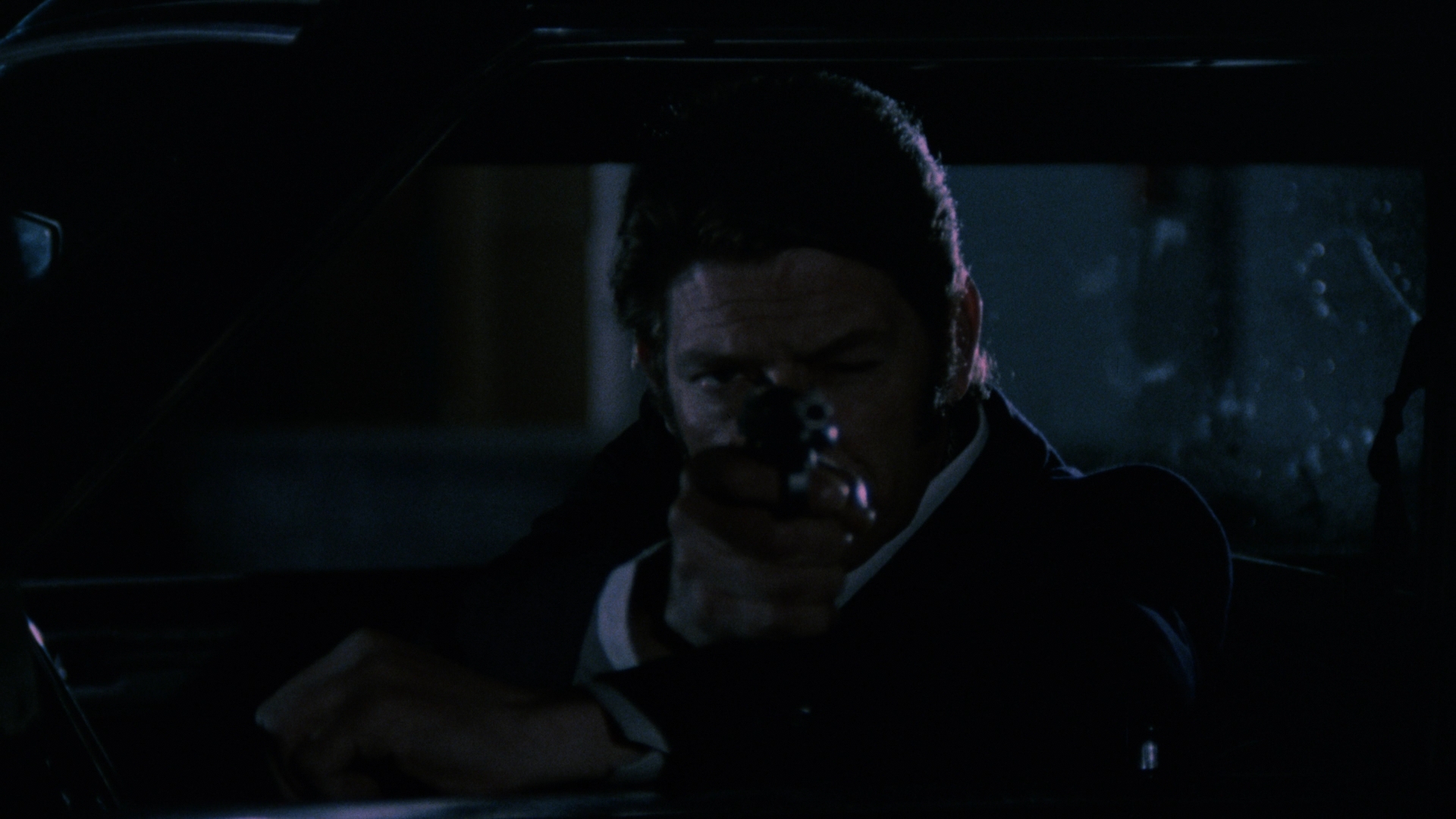 Released on tape in the U.S. by Monterery and sporadically available in various formats since, Ricco first popped up on DVD from Dark Sky in 2008 featuring an uncut widescreen transfer with the English-language version featuring Mitchum and Kennedy's voices (but pretty much everyone else dubbed to cover their accents). It looked fine for the time with extras including a trailer and a video interview with Mitchum (18m15s) about his move into acting after studying literature in college, his breakthroughs in films like Chisum, and his memories of doing action films in Europe.