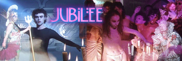a sharp, appreciably more pristine letterboxed edition, which adds slight information to the sides while trimming about as much extraneous space from the top and bottom. The biggest extra is a half hour documentary, “Jubilee: A Time Less Golden,” created by actor Spencer Leigh (who jumped on the Jarman ship later with the more sedate Caravaggio, but more on that below). Runacre, Wilcox, film writer Tony Rayns, production designer Christopher Hobbs, and filmmakers John Maybury and Lee Drysdale offer their memories and observations about Jarman and this film in particular. Looking warm and wholesome, the charmingly accented Wilcox scores the most memorable points as she recalls her trepidation as an unskilled actress thrown into such a challenging project. Also included is a short 8mm film, which later became the ballerina-and-scissors vision in the film (though minus the feature’s nudity), a lengthy gallery of black and white continuity snapshots, various stills and scrapbook tidbits, and the raucous original trailer, as well as historical notes by Jarman scholar Tony Peake. The disc also offers optional English subtitles for those having trouble with the hodgepodge of accents.