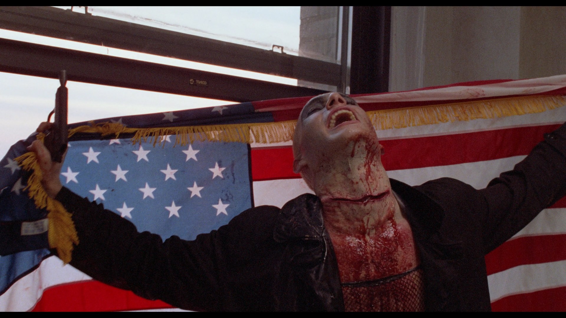 very badly, prompting the violent, unstable Buzz to attack and kill a Marilyn Monroe lookalike secretary that night and then enlist his creep pals Jo Jo (Daniel J. Johnson) and gender-bending Goose (Brad Friedman) into staging an all-out assault on the premises the next day to rob and terrorize anyone in sight.
